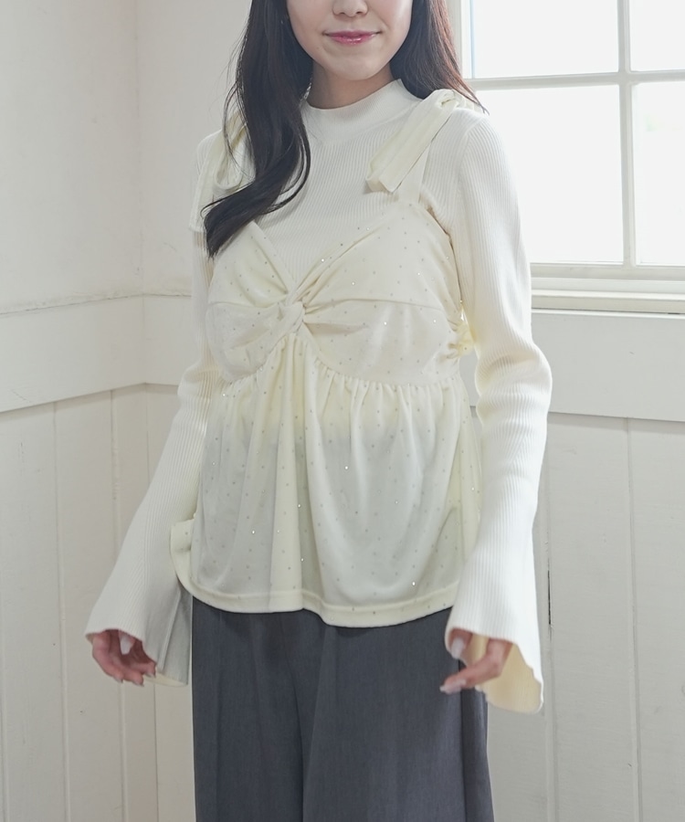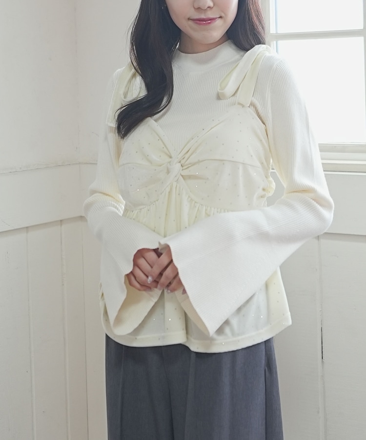 ラインストーンベロアビスチェ×フレアリブニットSET IVORY