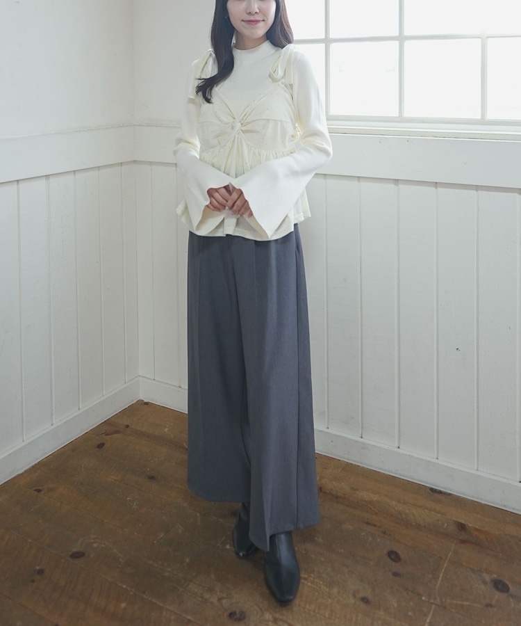 ニットはリブ入りでフィット感があり、すっきりとしたシルエット。
