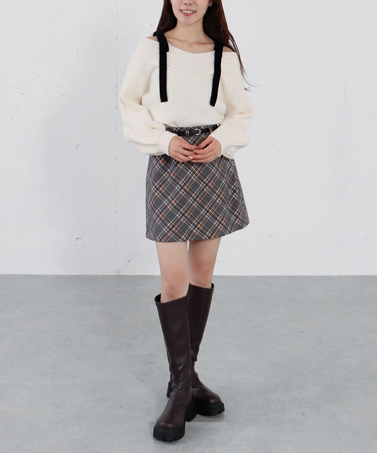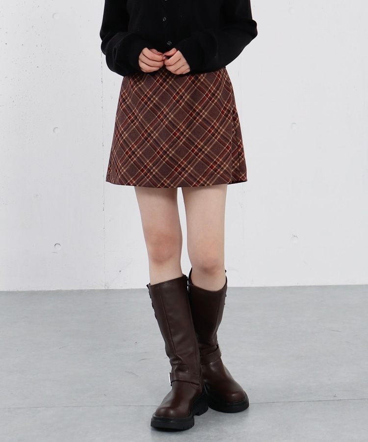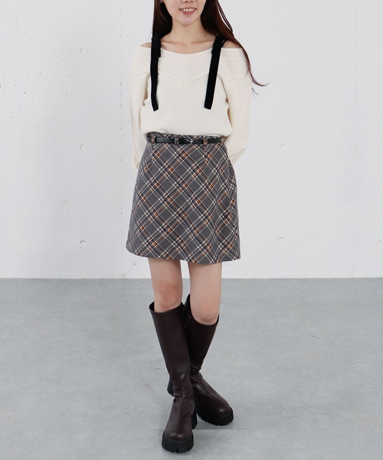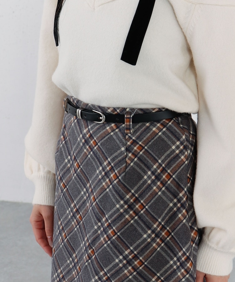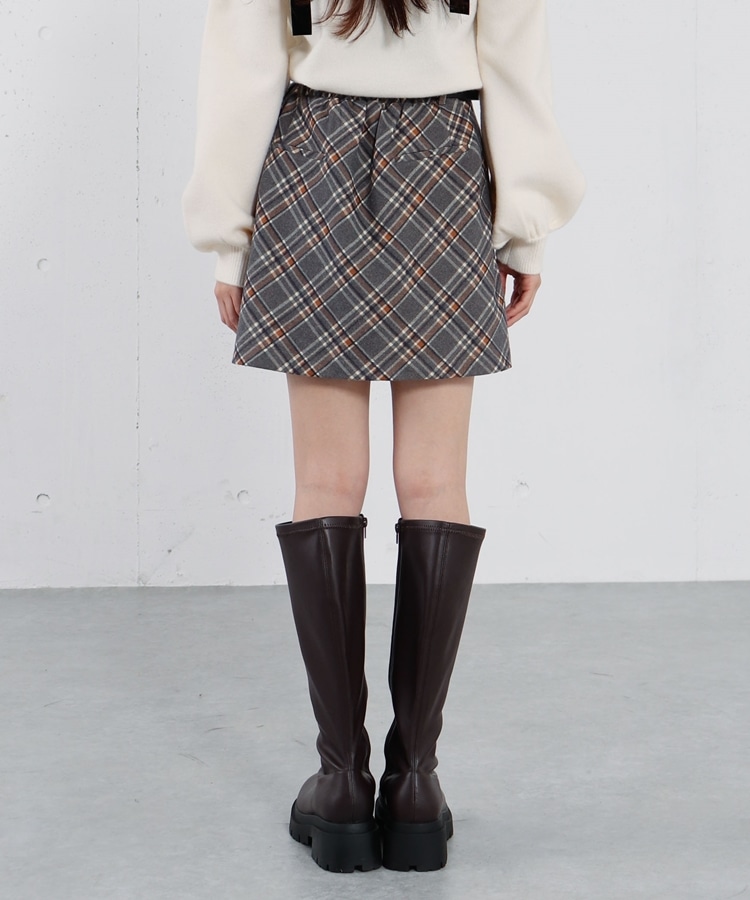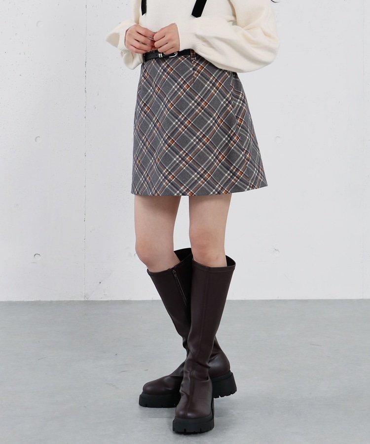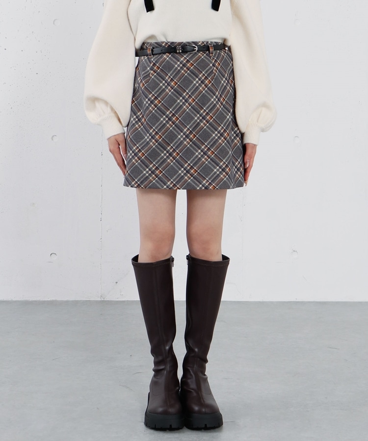 ■大人可愛く仕上がる、旬のチェックミニ■チェック柄が目を惹く台形ミニスカート。ウエストには取り外し可能なベルトをあしらい、スタイルにメリハリをつけながら、すっきりとしたシルエットを叶えます。台形ラインは脚をまっすぐきれいに見せてくれるので、ミニ丈でも上品に着こなせるデザイン。シンプルなトップスを合わせるだけでバランスよくまとまり、ニット・ブラウス・ショート丈トップスなど幅広いアイテムと相性抜群です。ーーーーーーーーーーーーーーー透け感:なし裏地:あり伸縮性:なし光沢感:なし生地厚さ:厚め洗濯方法:クリーニング推奨※詳しいお手入れ方法は商品についているタグをご覧くださいーーーーーーーーーーーーーーー※ご利用のモニター環境により、実際の色味と多少異なる場合がございます。