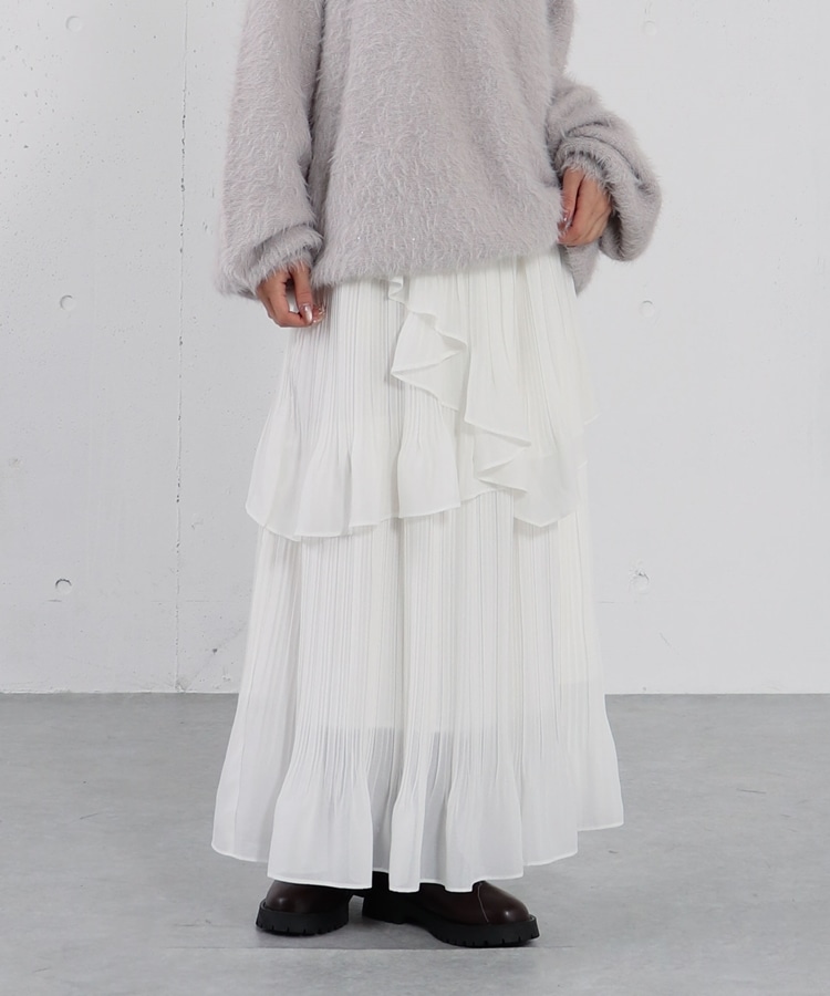 ■程よい透け感で抜けをプラス■【デザイン】・ふわっと揺れるアシンメトリーなティアードでコーデを格上げ♪・腰回りは広がりすぎないティアードでスッキリ履けます・ウエストはフルゴム仕様でリラックス感のある履き心地です【素材感】・軽く透け感のある生地感で重たくなりがちなニットコーデに抜け感をプラス・柔らかく落ち感のある生地で広がりすぎずに履けます。ーーーーーーーーーーーーーーー透け感:アイボリーややあり裏地:あり伸縮性:なし光沢感:なし生地厚さ:普通洗濯方法:手洗い推奨※詳しいお手入れ方法は商品についているタグをご覧くださいーーーーーーーーーーーーーーー※ご利用のモニター環境により、実際の色味と多少異なる場合がございます。【スタイリング】・ミドルニットやスウェットに合わせてゆるコーデに・短丈ニットできれいめ甘め合わせも♪▼スタッフ別の詳しい着こなしは下のCOORDINATEをチェック