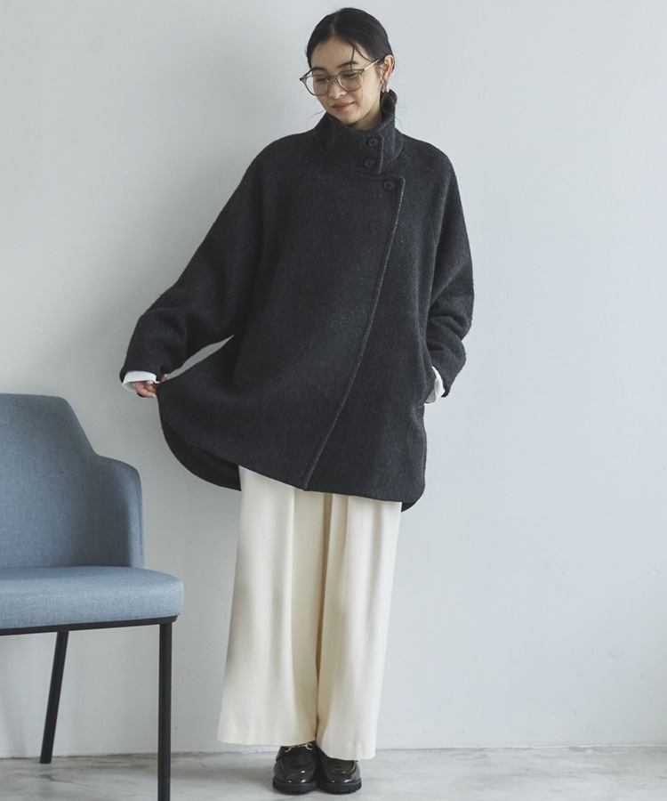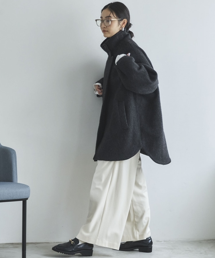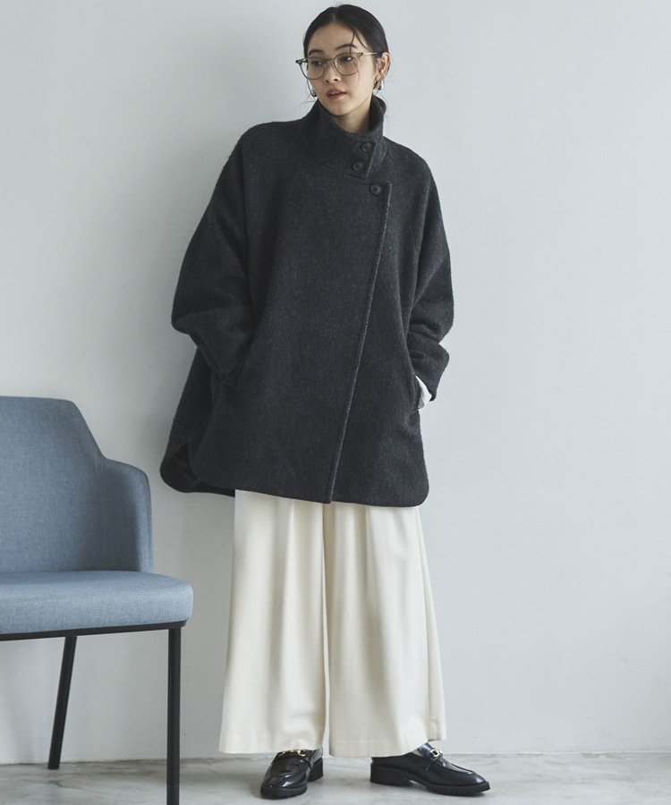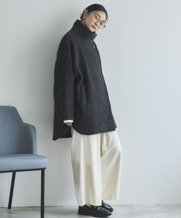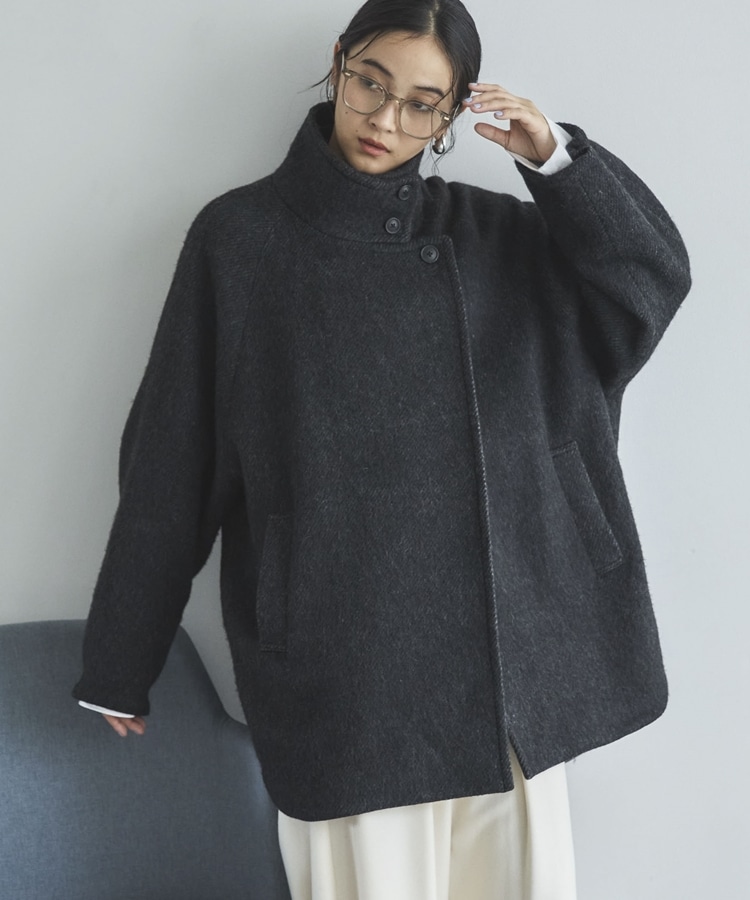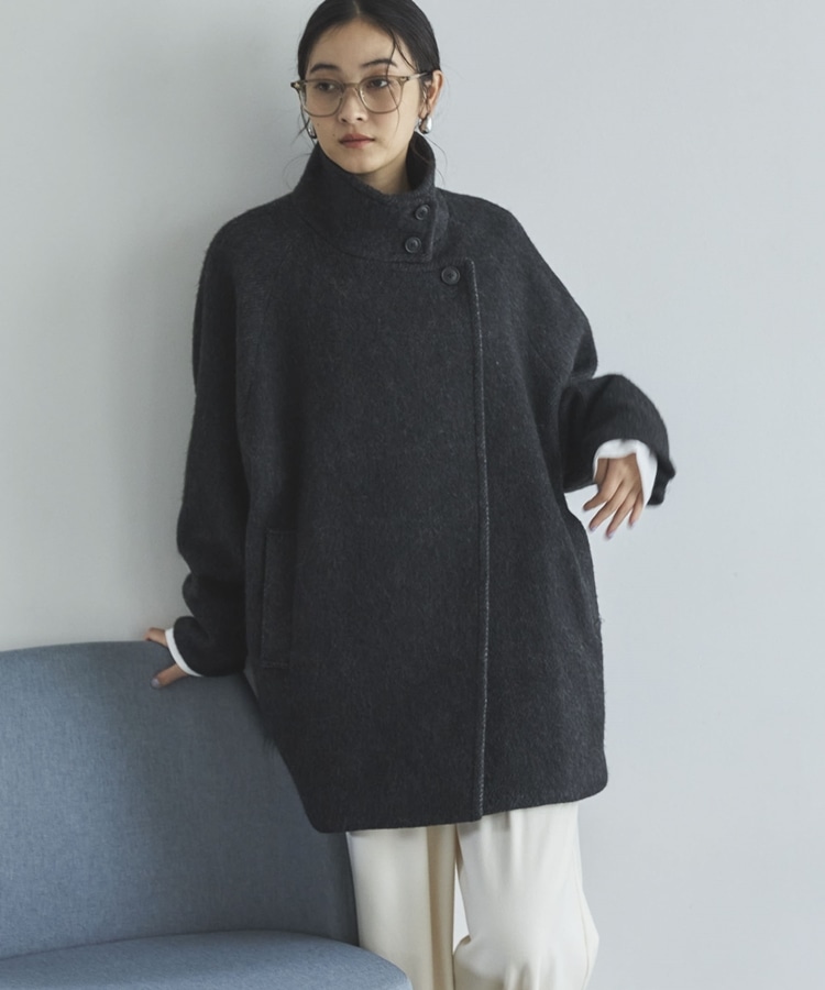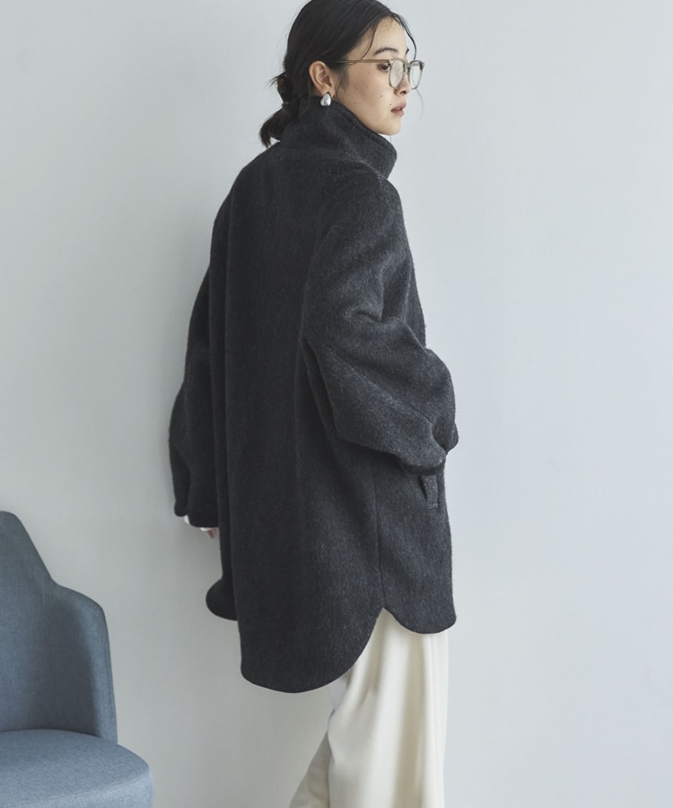 シャギースタンドオーバーコート CHARCOAL GRAY