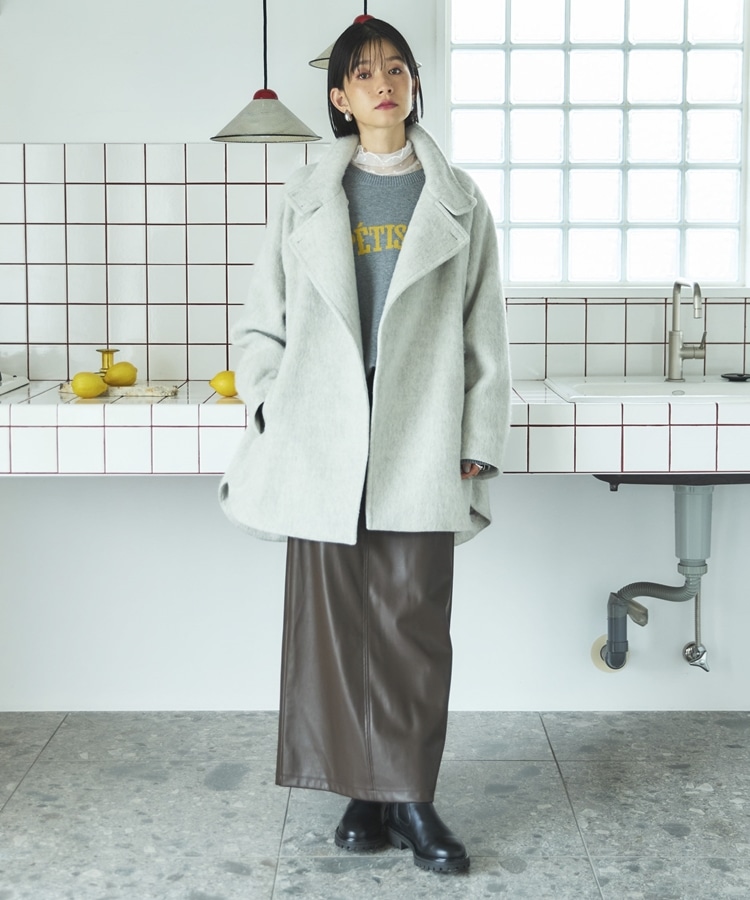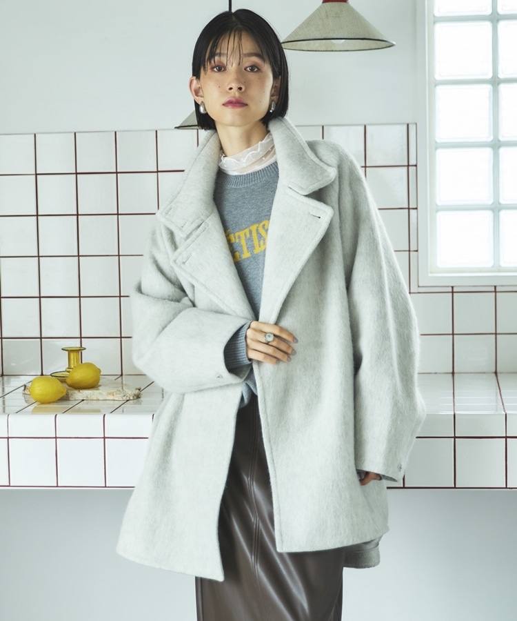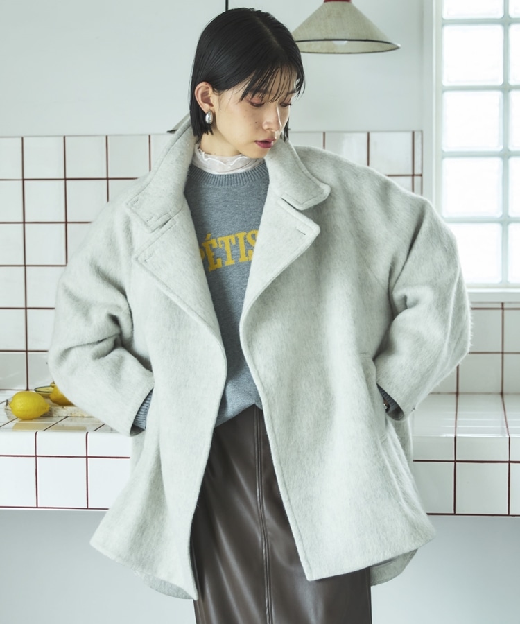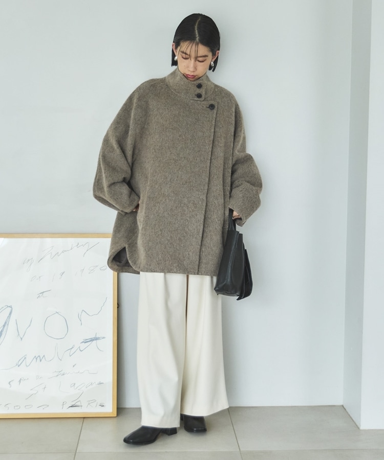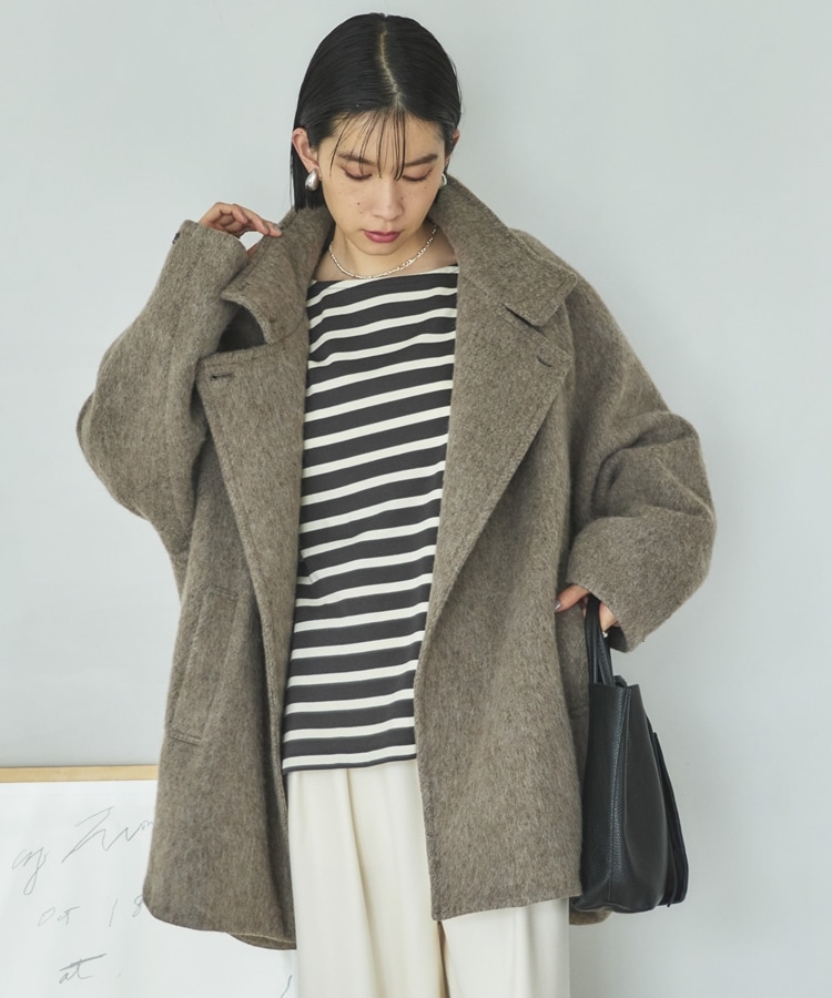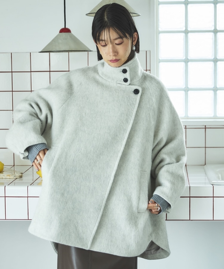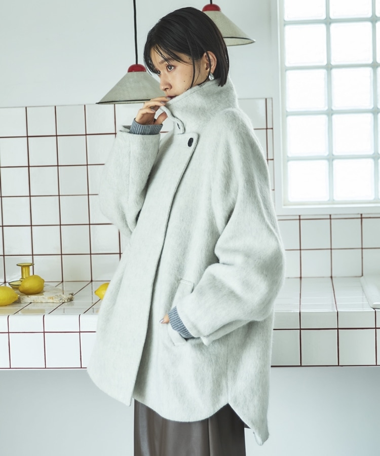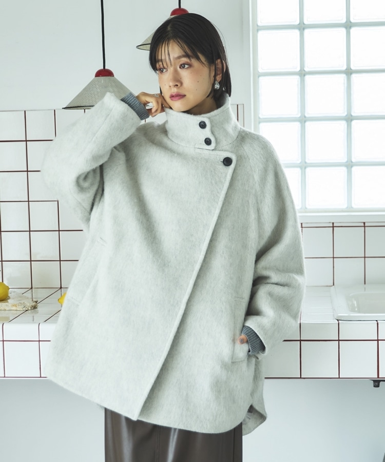 シャギースタンドオーバーコート CHARCOAL GRAY