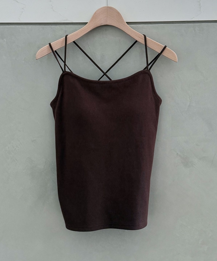 カップ付きバッククロスリブキャミソール BROWN
