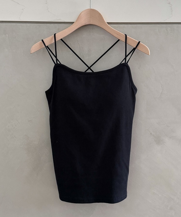 カップ付きバッククロスリブキャミソール BLACK