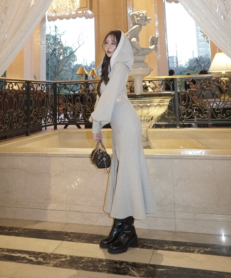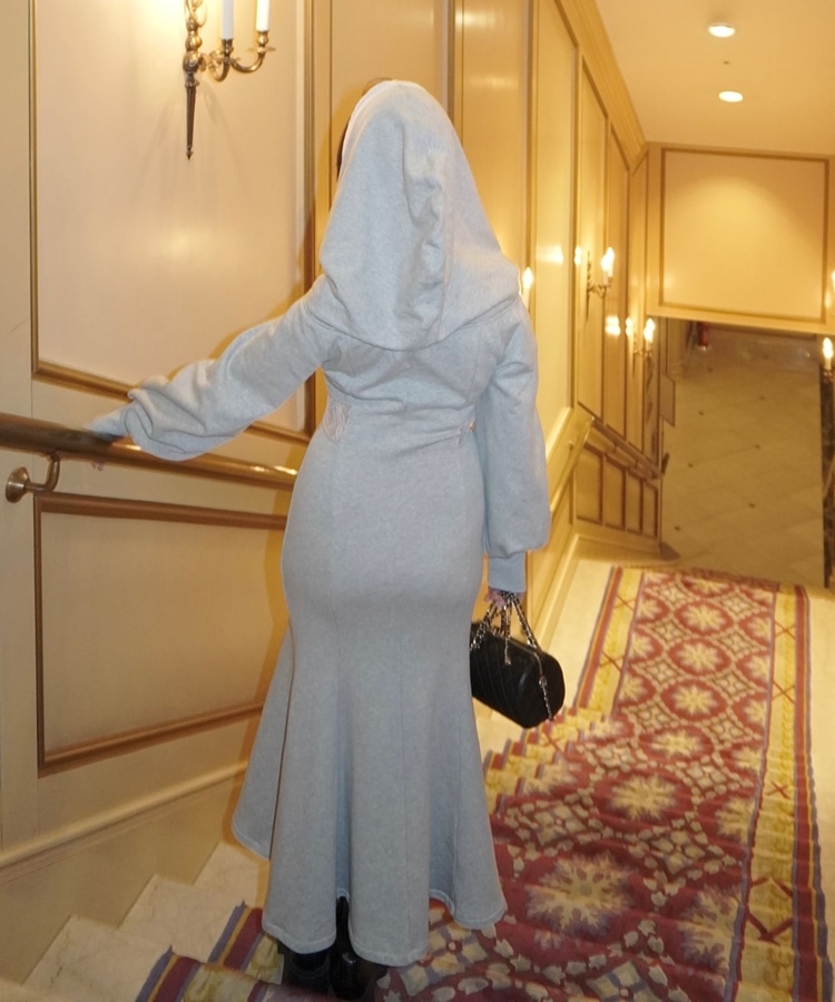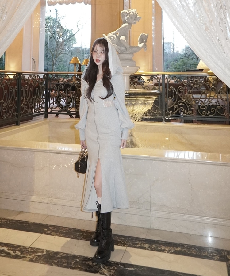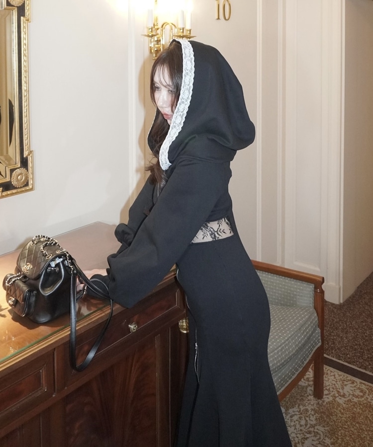 フードとウエストのレースが目を引くワンピース