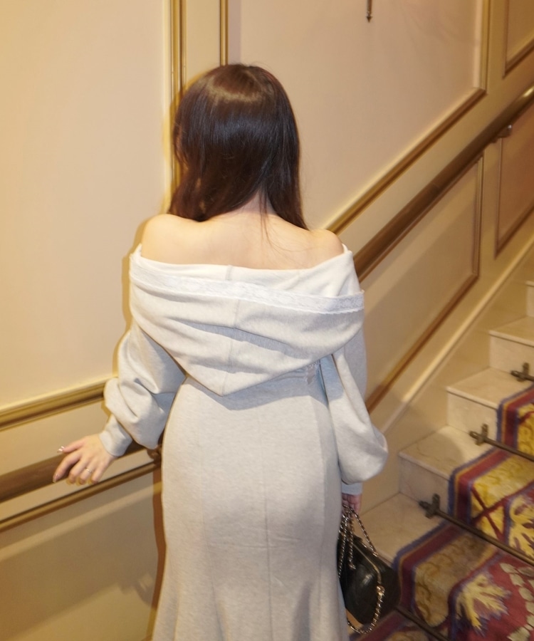 lace foodie offshoulder maxi onepiece GRAY