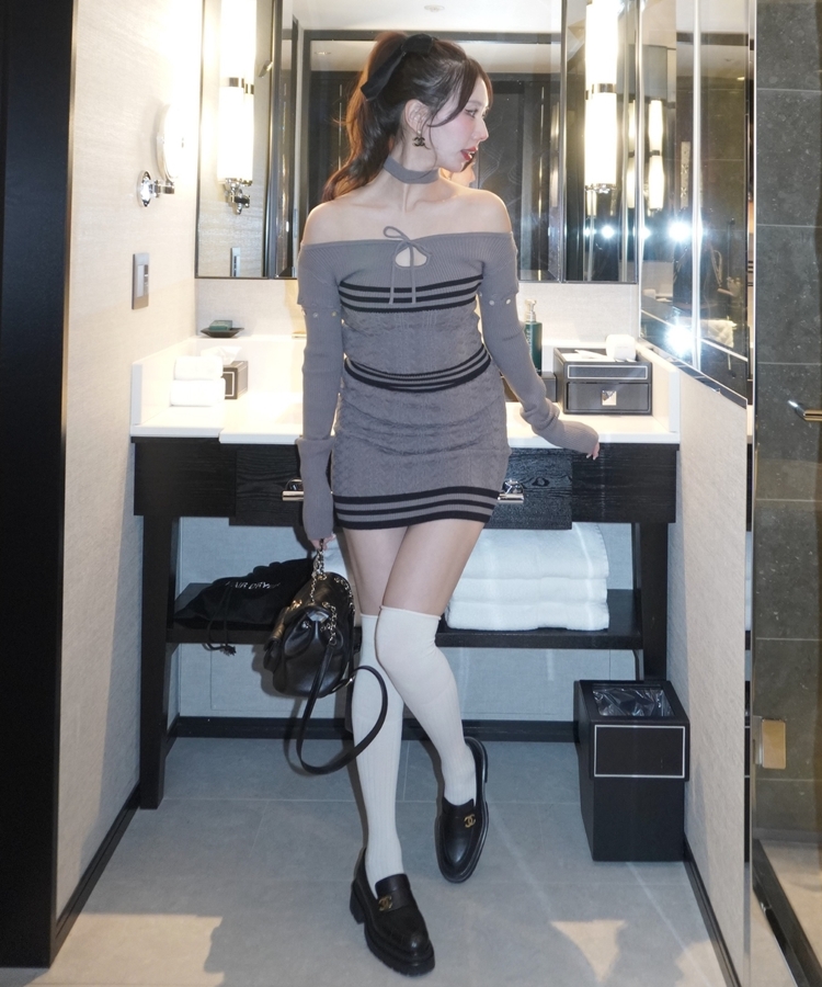 胸元もさりげなくあいていて程よい抜け感を演出してくれます。