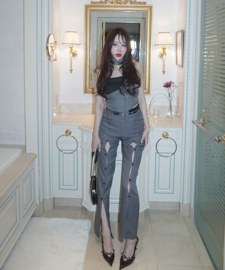 260681103001のcheck slit pantsと着用するとセットアップとして着用して頂けます。