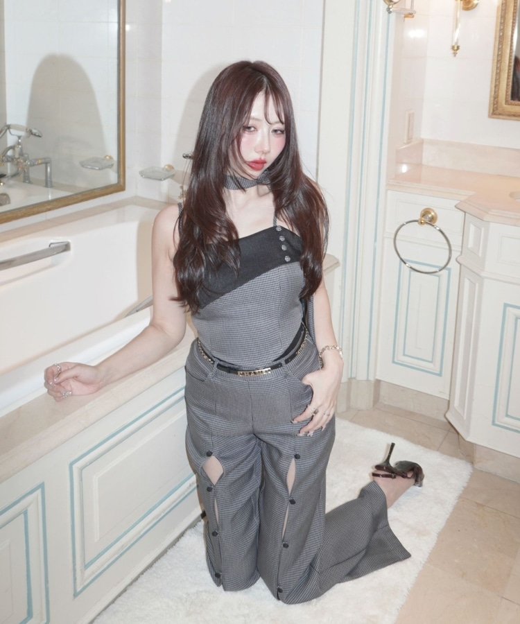ウエスト部分がVカットになっていることでお腹周りも着痩せできます。