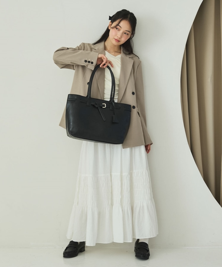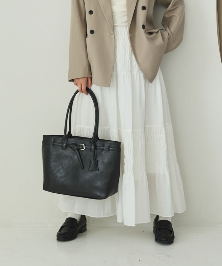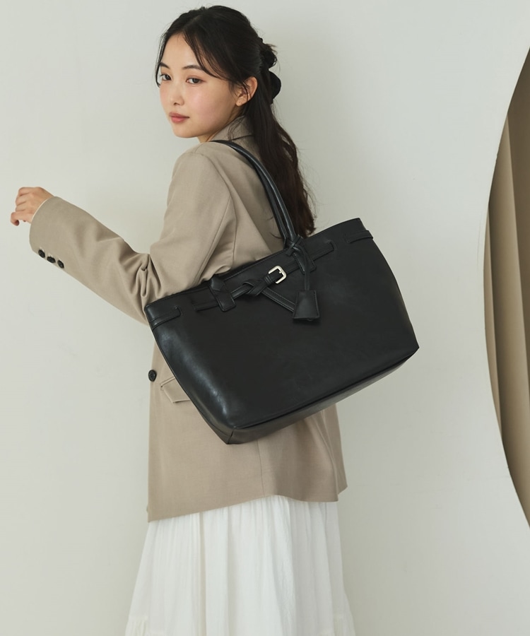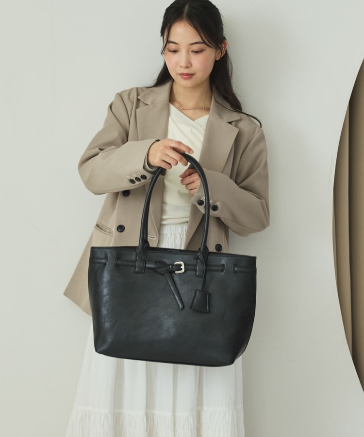 ■毎日持てるちょうどいいバッグ■【デザイン】・フロントのベルトとチャームがポイントになるバッグ・A4サイズやペットボトルも入る収納力で毎日の通勤通学にピッタリなサイズ感・広めな肩紐で持ちやすさも◎ーーーーーーーーーーーーーーー【detail】外ポケット:なし内ポケット:ありショルダー紐:なしーーーーーーーーーーーーーーー【スタイリング】・シンプルなデザインでどんなコーデにも馴染みます♪・毎日の通勤通学にシーンを選ばずに使えます。▼スタッフ別の詳しい着こなしは下のCOORDINATEをチェック
