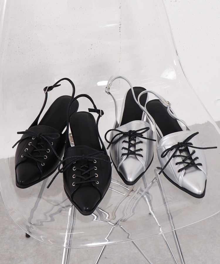 ・つま先のレースアップでコーデに抜け感を出してくれるデザイン