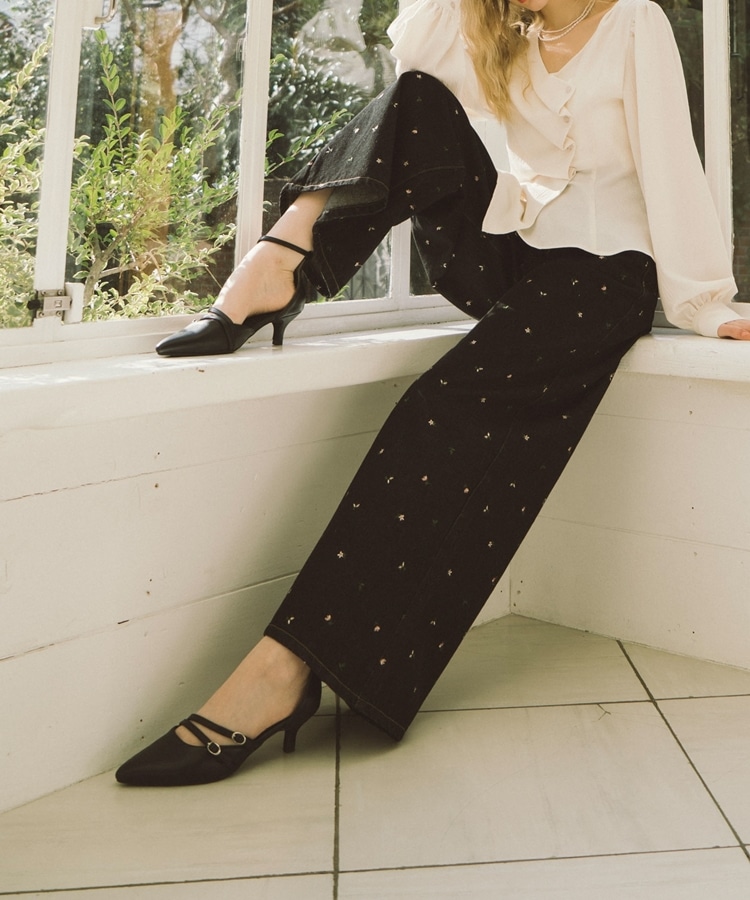 ■足元に自然な抜け感■【デザイン】・華奢なストラップとポインテッドトゥで足元をきれいに見せてくれます・足首にもストラップ付で履き心地も◎・3cmの細めなヒールで足元に軽さと抜け感をプラスできます【素材感】・程よい光沢感の柔らかいフェイクレザーーーーーーーーーーーーーーーー【size】・Msize...23~23.5cm・Lsize...24~24.5cm・ヒール...3cmーーーーーーーーーーーーーーー※ご利用のモニター環境により、実際の色味と多少異なる場合がございます。【スタイリング】・甘めコーデに合わせて大人っぽいスタイリングに・スラックスやロングスカート合わせのオンスタイルにも▼スタッフ別の詳しい着こなしは下のCOORDINATEをチェック