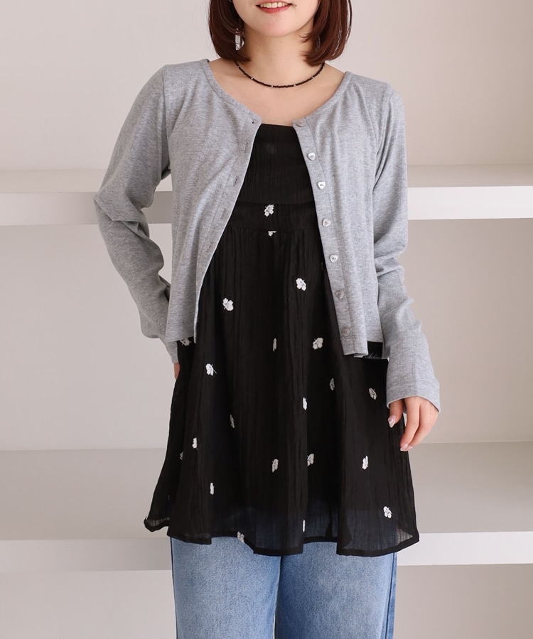 ・ナチュラルな花柄刺繍が目を引く、ミニキャミワンピース