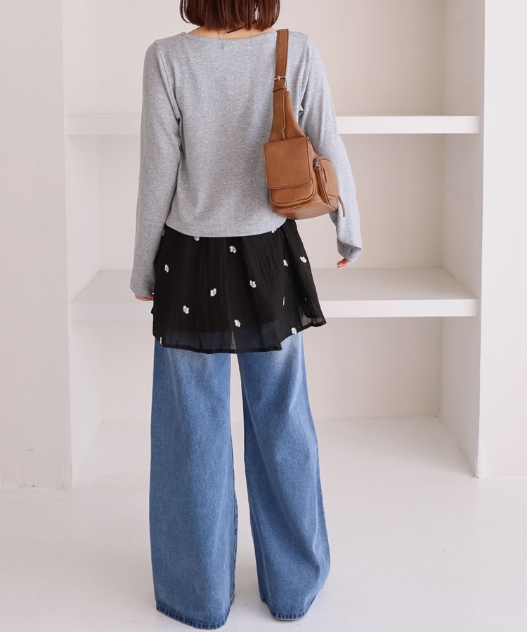 ・スウェットを重ねて、ラフさの中に刺繍が映えるトレンドスタイルに