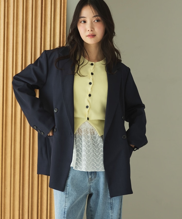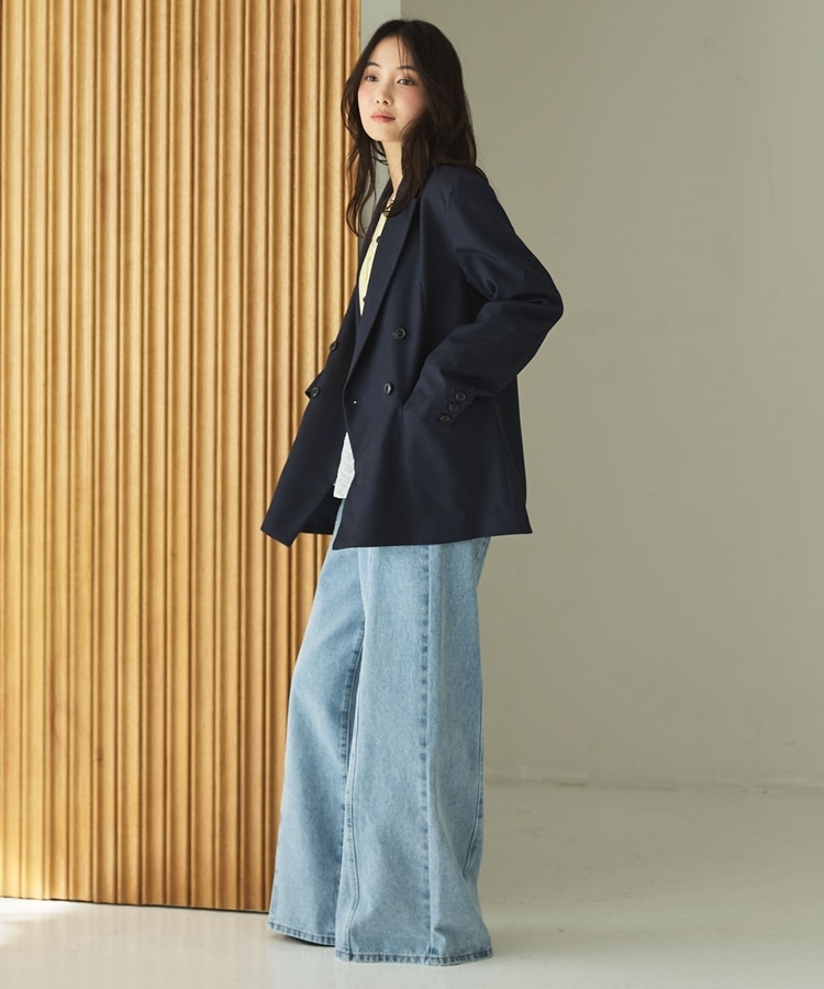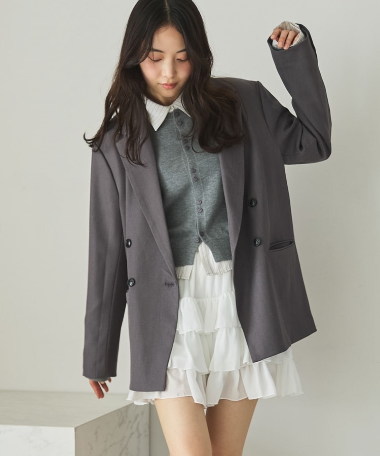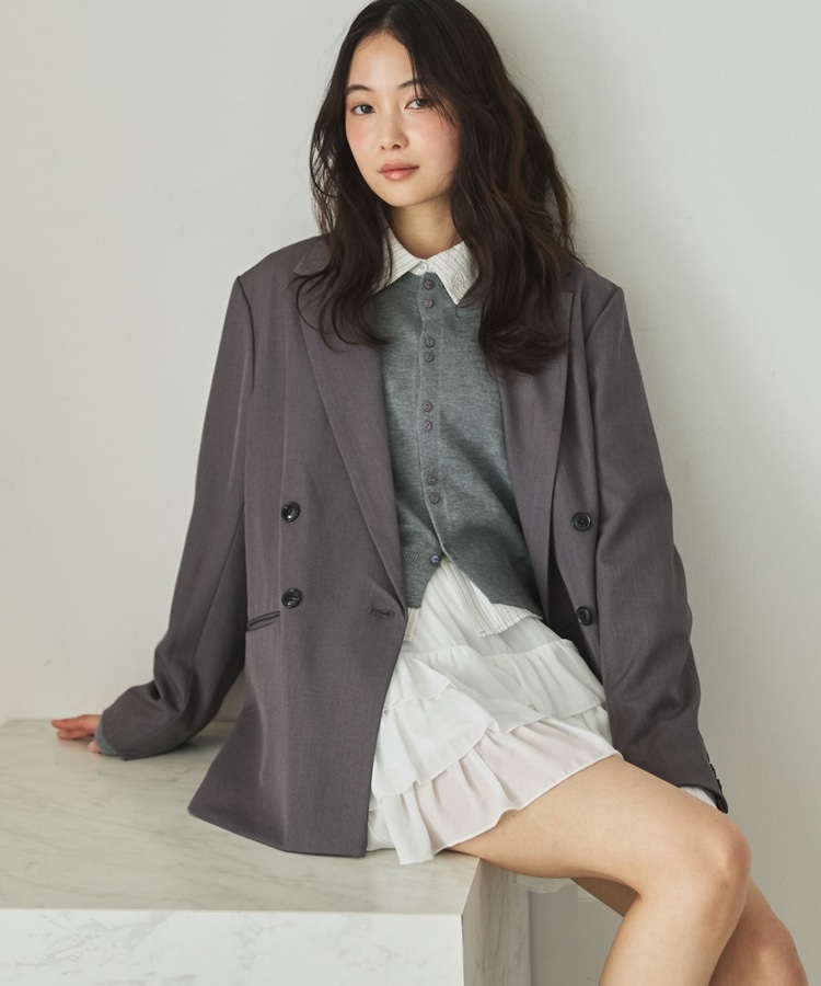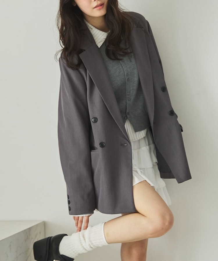・ダブルボタンでゆったりしながらもストンと落ちるデザインでスッキリと着こなせます