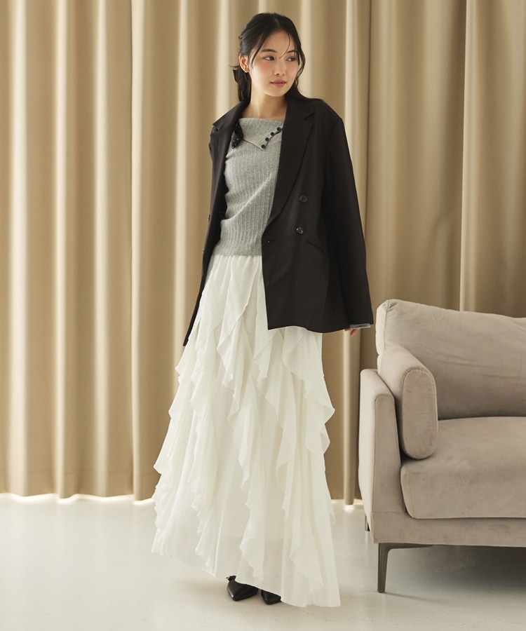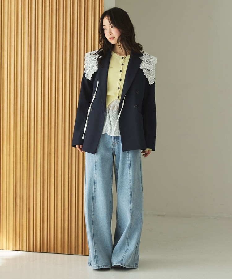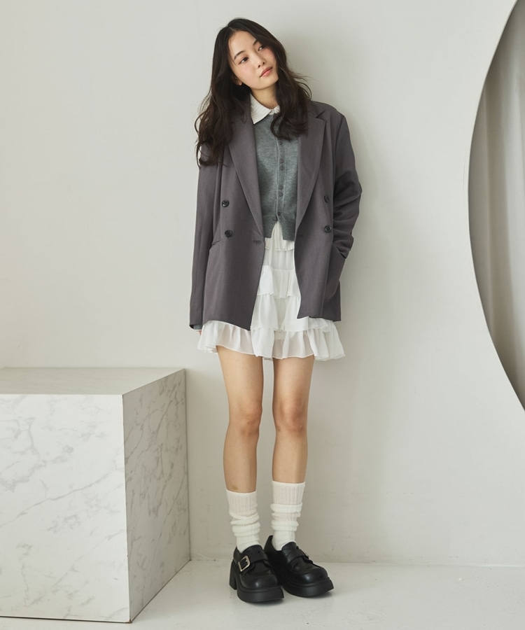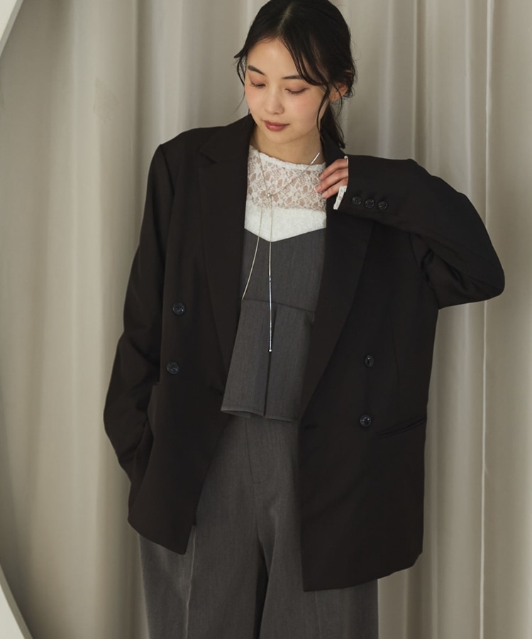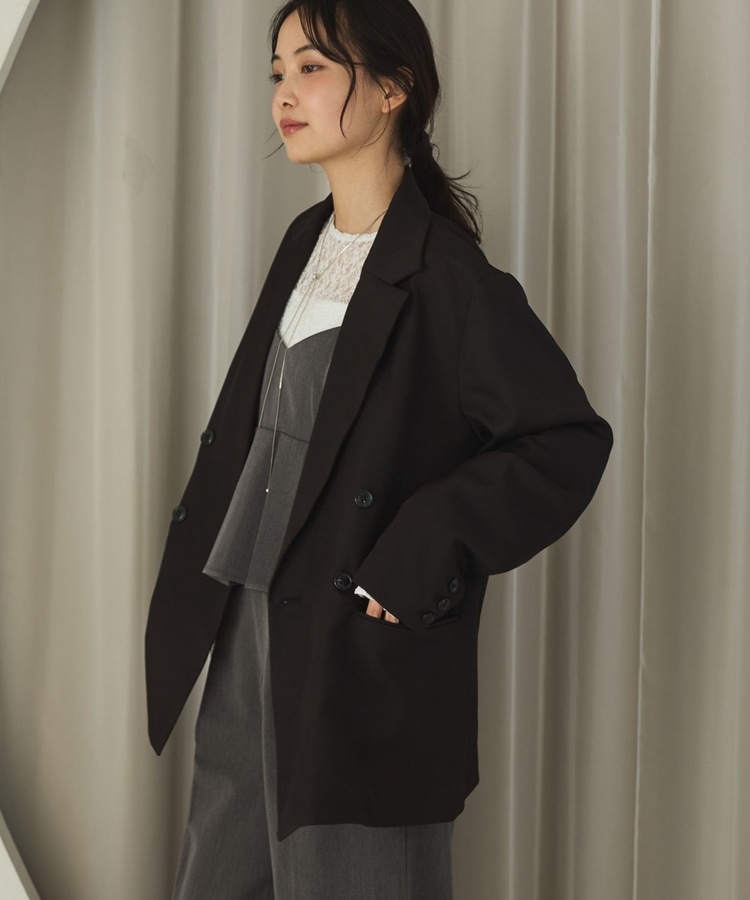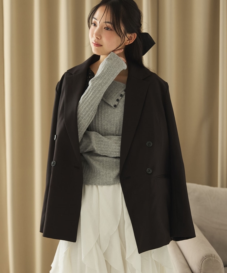 ・ダブルボタンでゆったりしながらもストンと落ちるデザインでスッキリと着こなせます