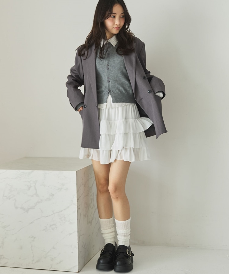 ・同素材のパンツやスカートとセットアップ風の着こなしもおすすめ
