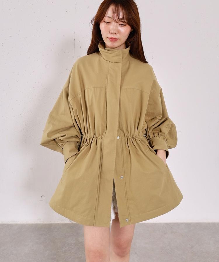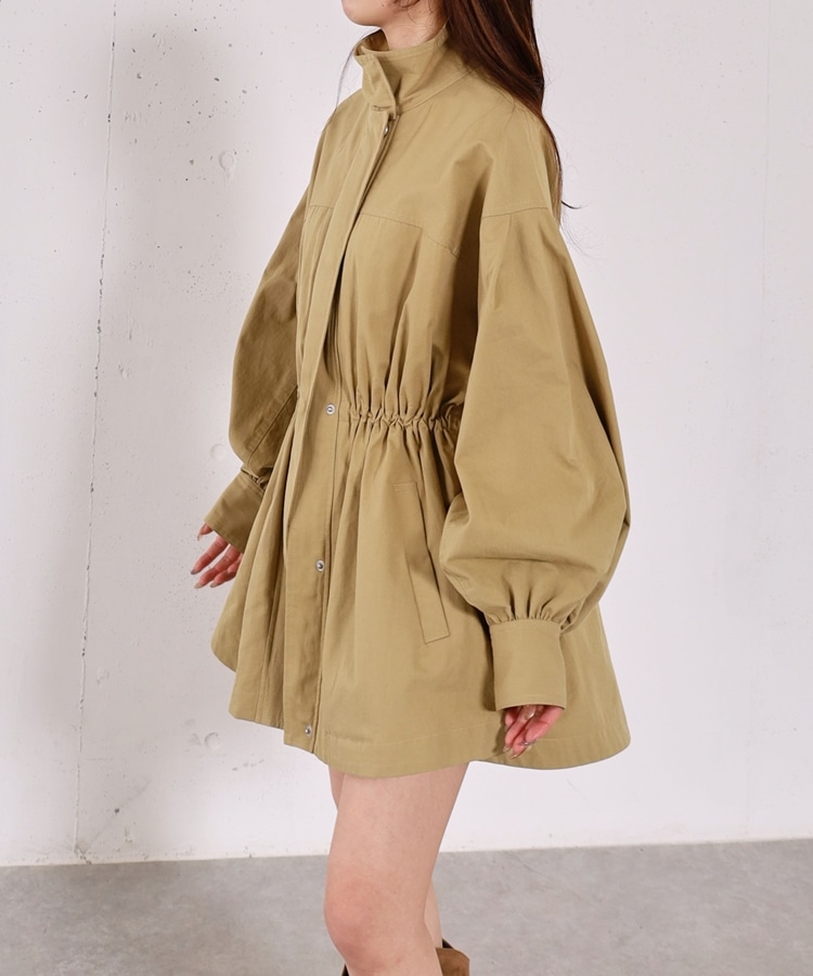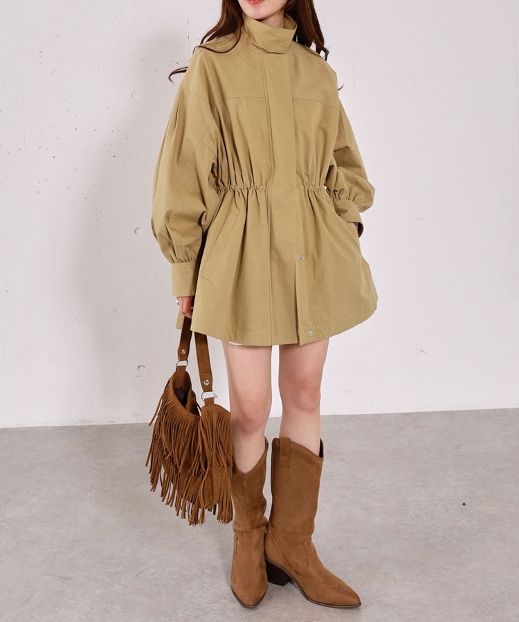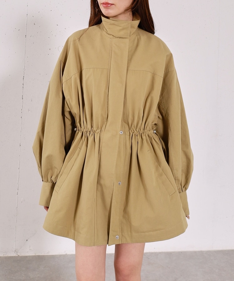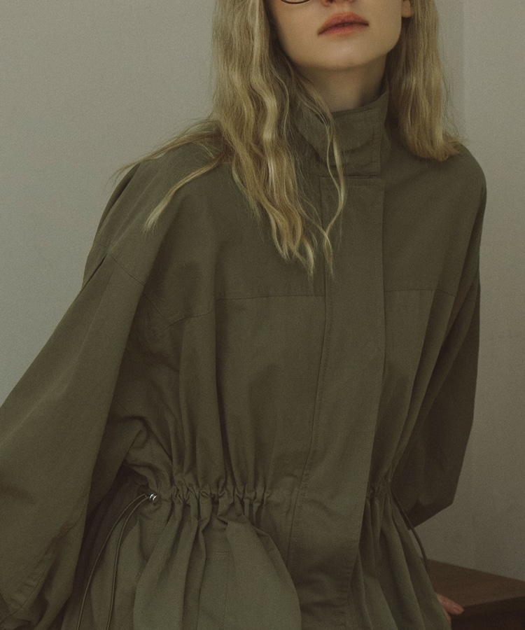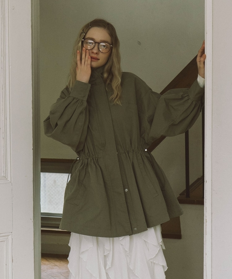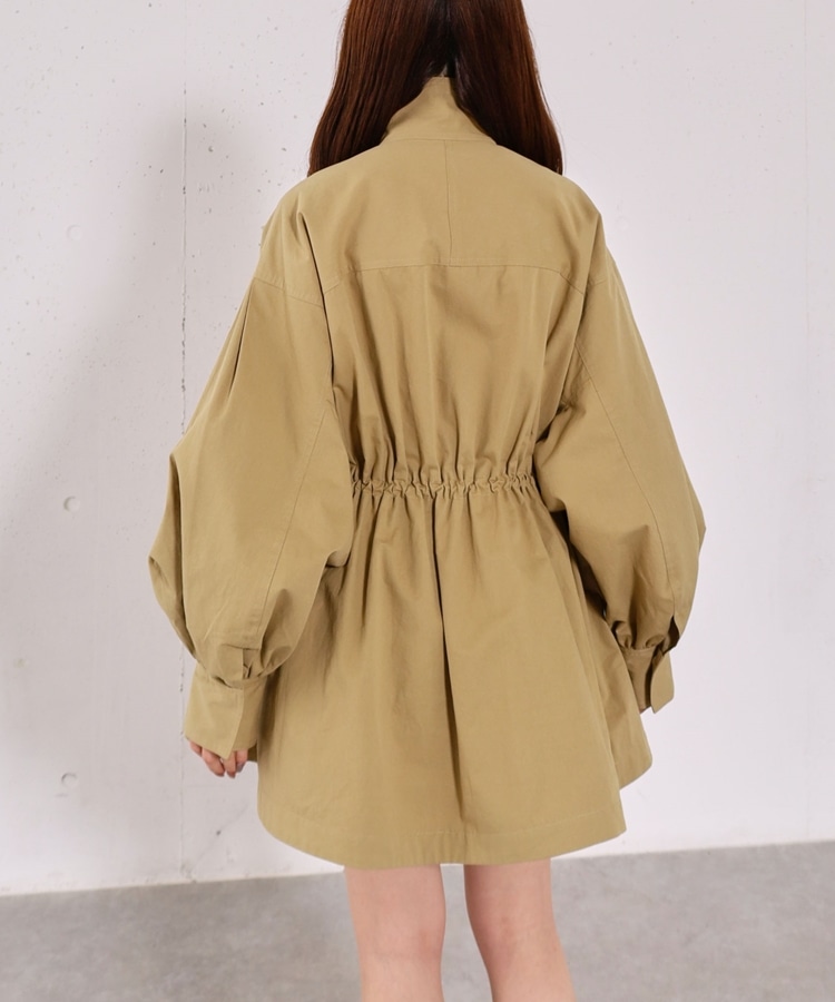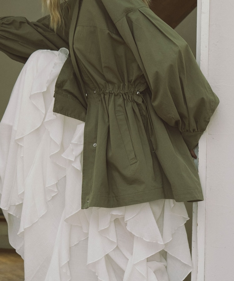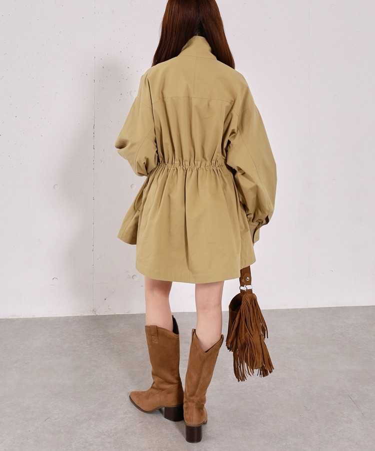 ・ウエストの絞りでワンピース風にも着られるミリタリジャケット