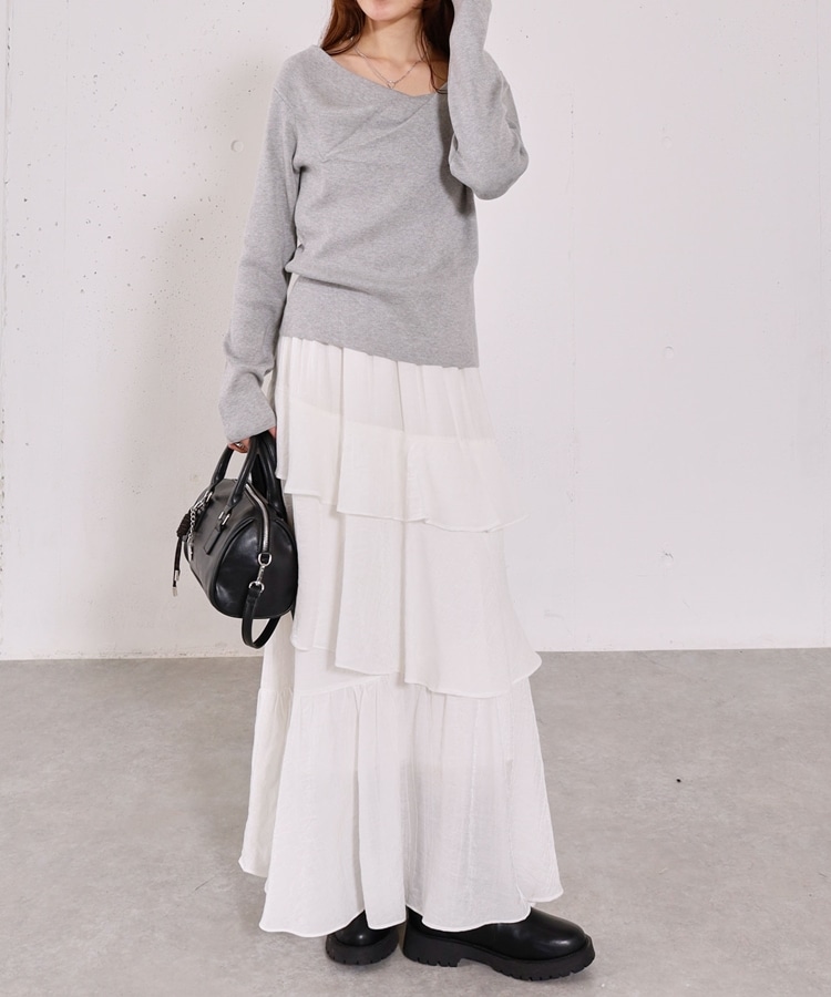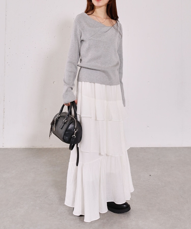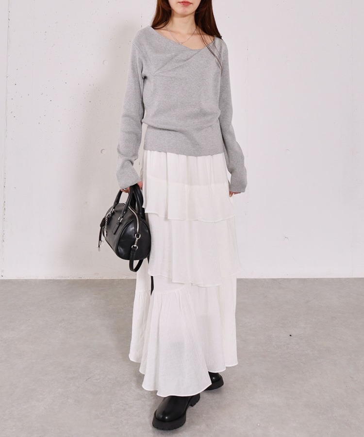 ■タックとドレープがつくる、上品さ■【デザイン】・フロントに施したタックデザインが自然なドレープを演出・身体のラインを拾いにくい立体的なシルエット・1枚で着映えする、存在感のあるデザインニット・インでもアウトでもバランスよく決まる丈感【素材】・落ち感のある、しなやかなニット素材・ドレープがきれいに出る程よい重量感・肌当たりがやさしく、快適な着心地・春先に使いやすい万能素材ーーーーーーーーーーーーーーー透け感:なし裏地:なし伸縮性:なし光沢感:なし生地厚さ:普通洗濯方法:手洗可※詳しいお手入れ方法は商品についているタグをご覧くださいーーーーーーーーーーーーーーー※ご利用のモニター環境により、実際の色味と多少異なる場合がございます。【スタイリング】・パンツスタイルやロングスカートとの合わせがバランスよく合わせらておすすめ・ジャケットのインナーに使用するのも◎▼スタッフ別の詳しい着こなしは下のCOORDINATEをチェック