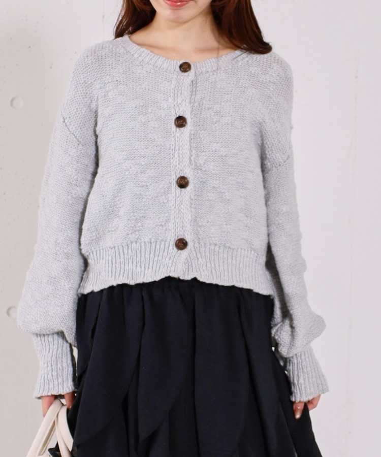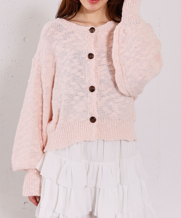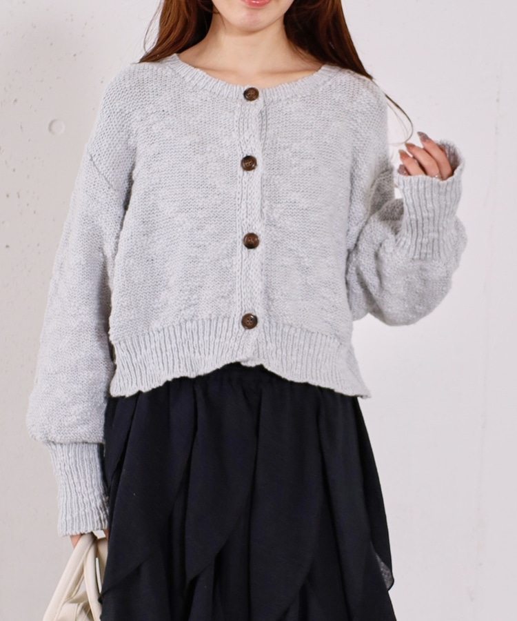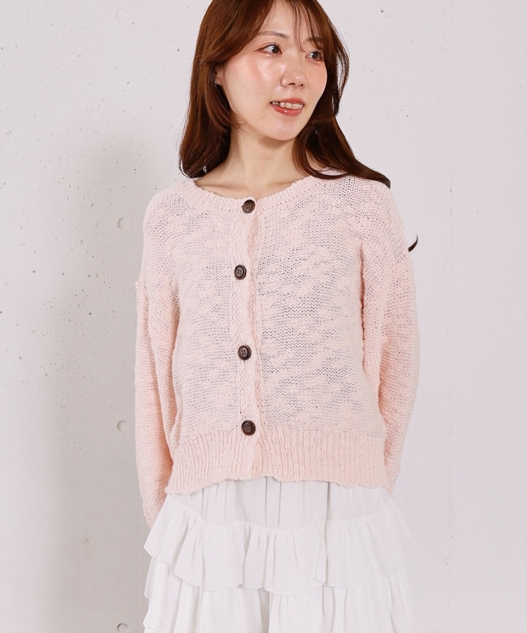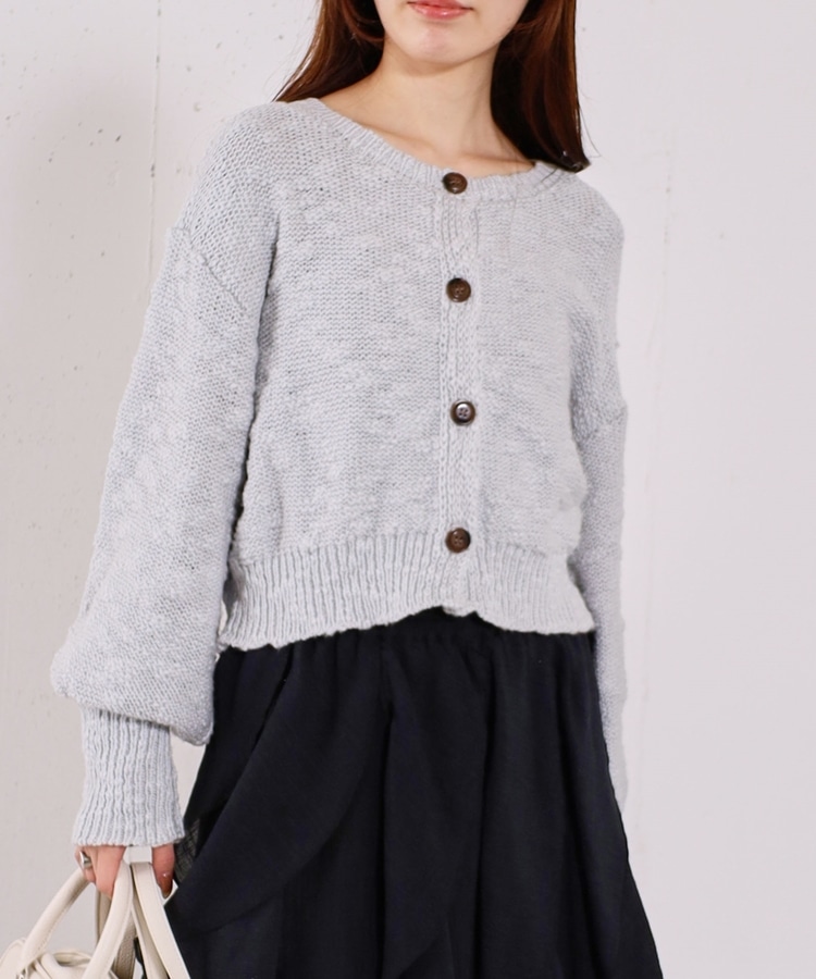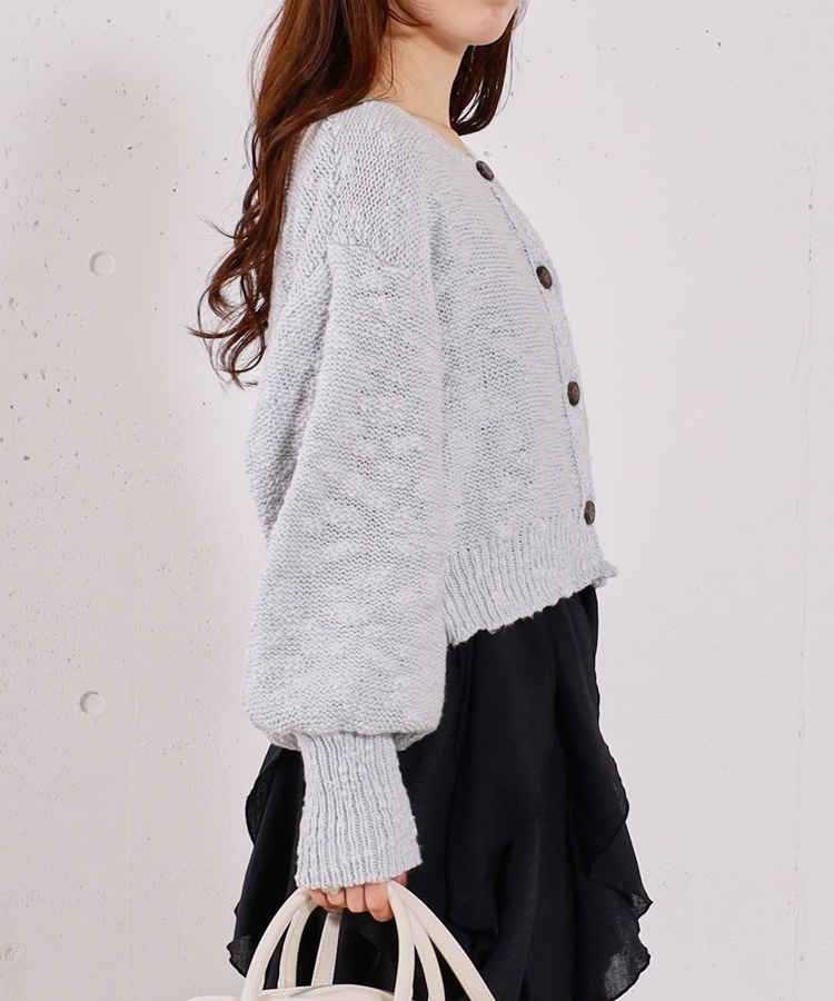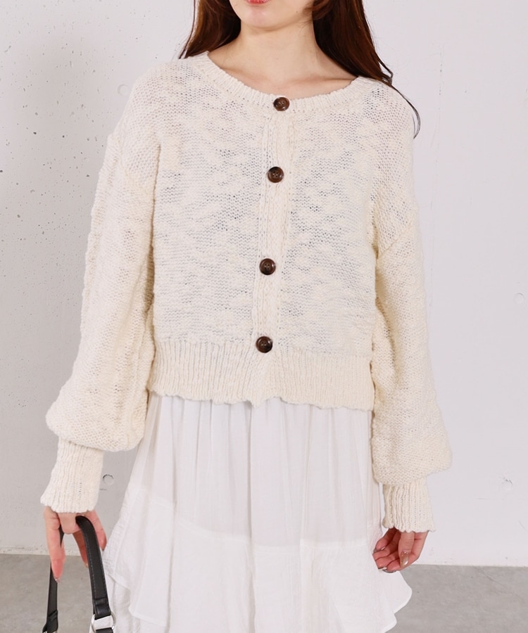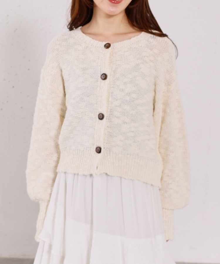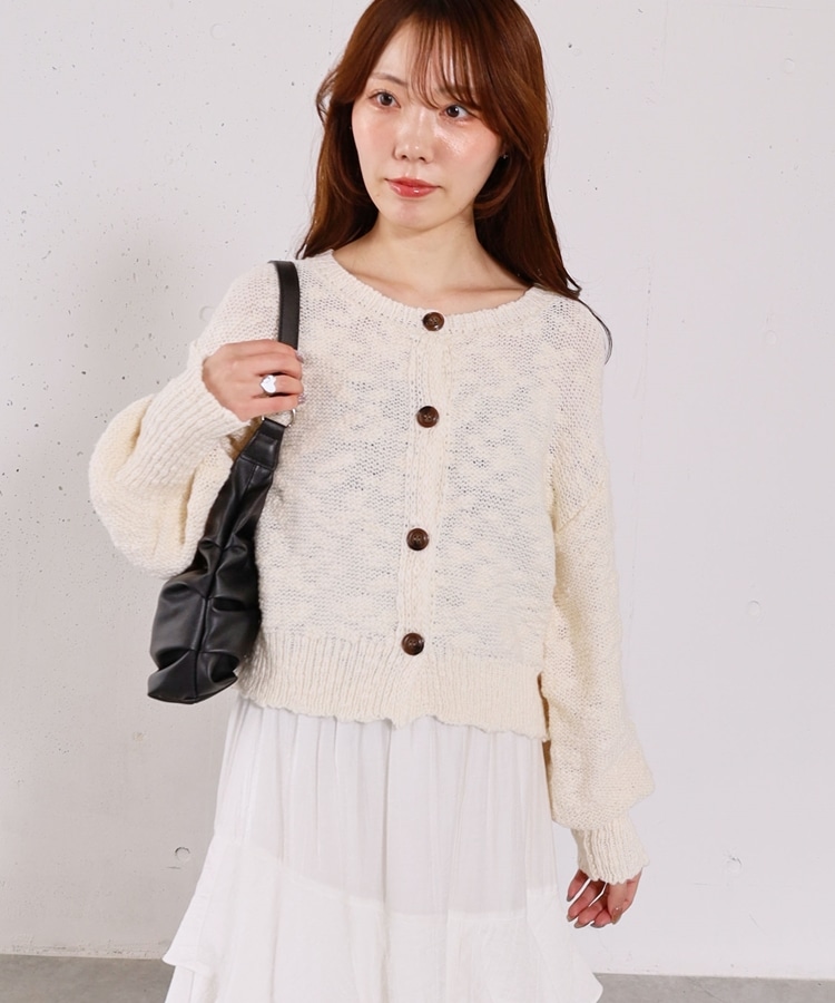 ■やわらかく羽織れる、春気分カーディガン■【デザイン】・ざっくりとした編み地が、ナチュラルで抜け感のある印象に・袖口がキュッと締まったポワン袖デザインで、ゆったり女性らしく・全体はリラックス感のあるサイズ感・柔らかいカラー展開で、春らしい軽やかな雰囲気に【素材感】・柔らかく肌当たりが優しい生地感・ざっくり編みながらも軽さがあり、長時間着てもストレスフリー・厚すぎず薄すぎない程よい生地感で、季節の変わり目にも・カーディガンとしても羽織りやすい一枚ーーーーーーーーーーーーーーー透け感:あり裏地:なし伸縮性:あり光沢感:なし生地厚さ:普通洗濯方法:手洗い可※詳しいお手入れ方法は商品についているタグをご覧くださいーーーーーーーーーーーーーーー※ご利用のモニター環境により、実際の色味と多少異なる場合がございます。【スタイリング】・デニム合わせでラフな大人カジュアルに・スカート合わせで、やさしい雰囲気なコーデも◎・羽織りとしても、前を閉じてトップス風にも着用可能▼スタッフ別の詳しい着こなしは下のCOORDINATEをチェック