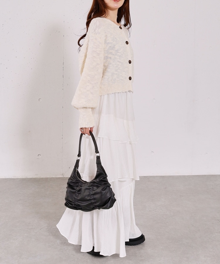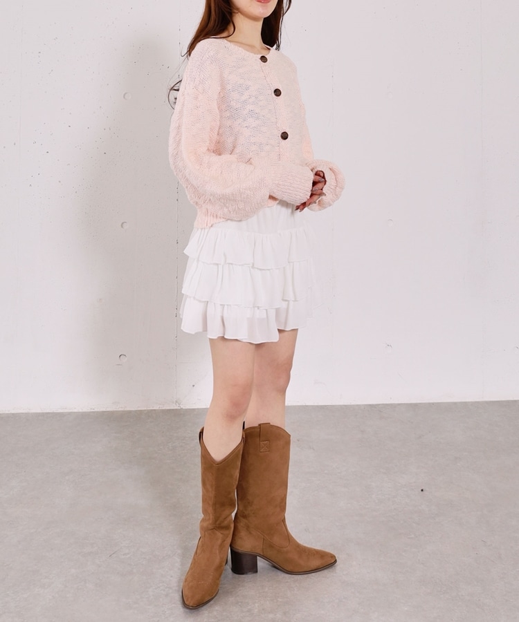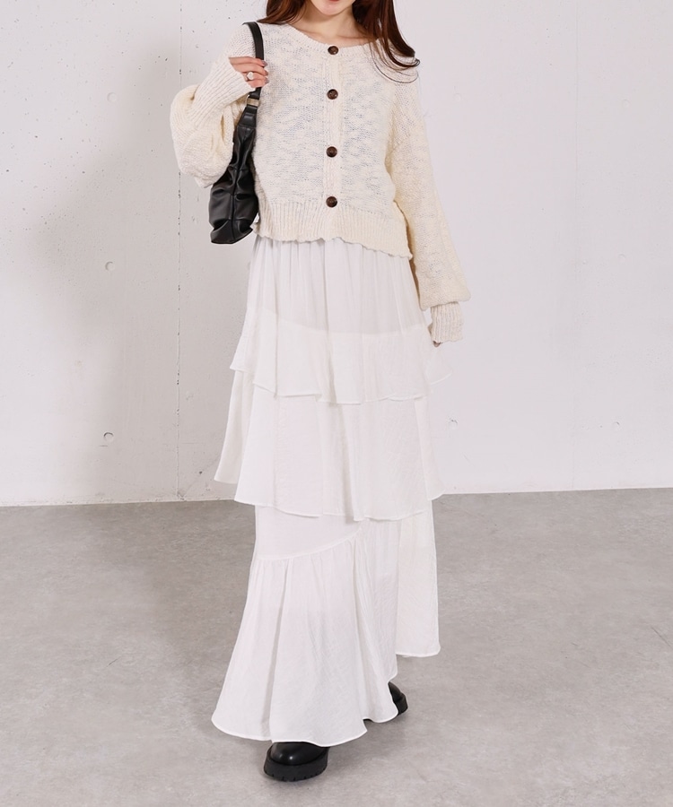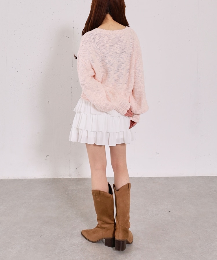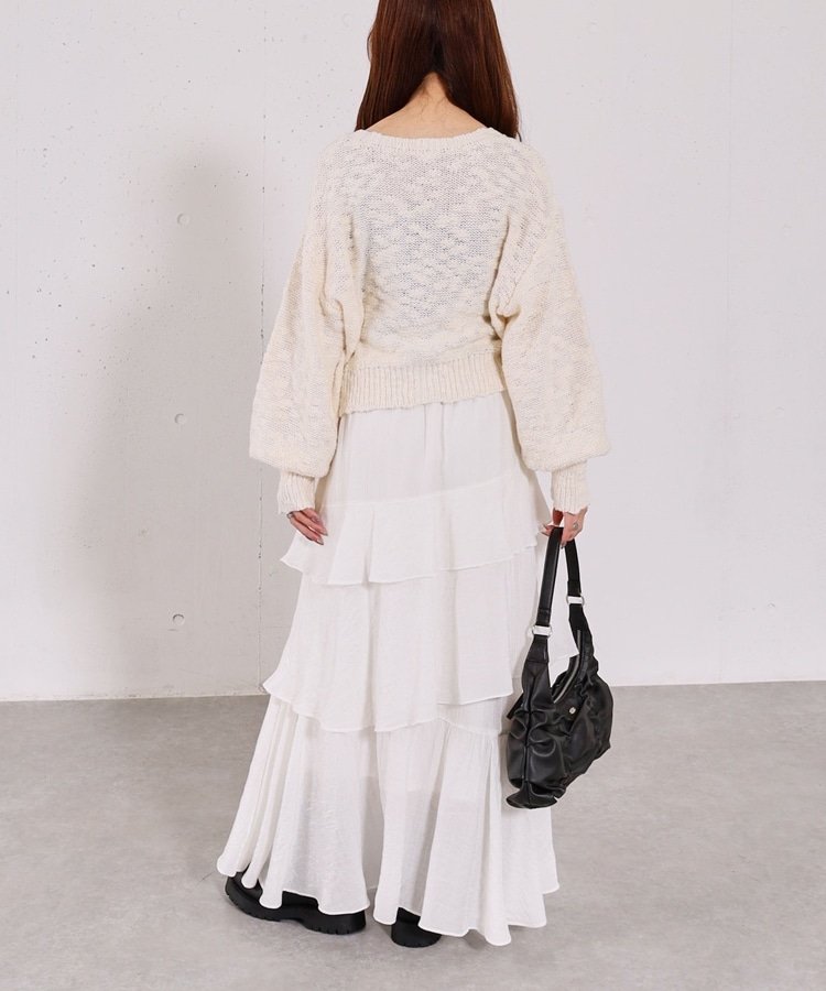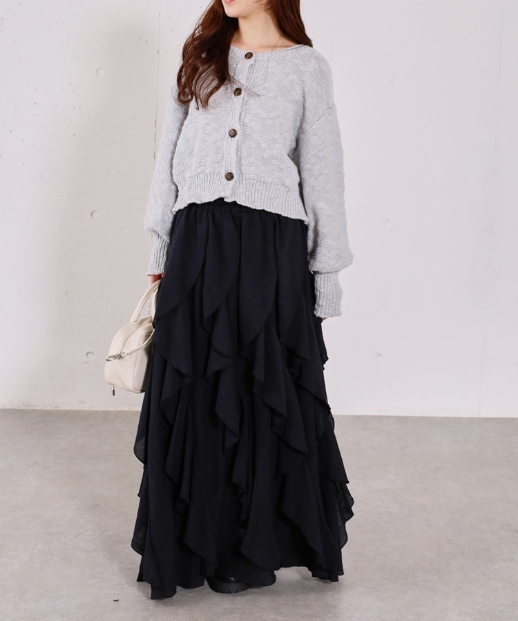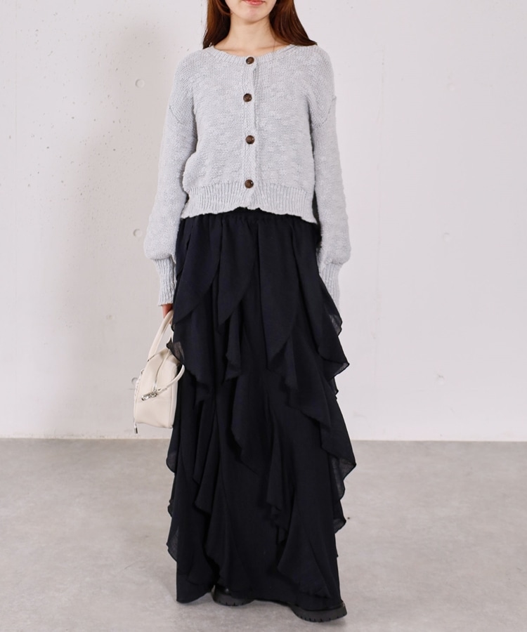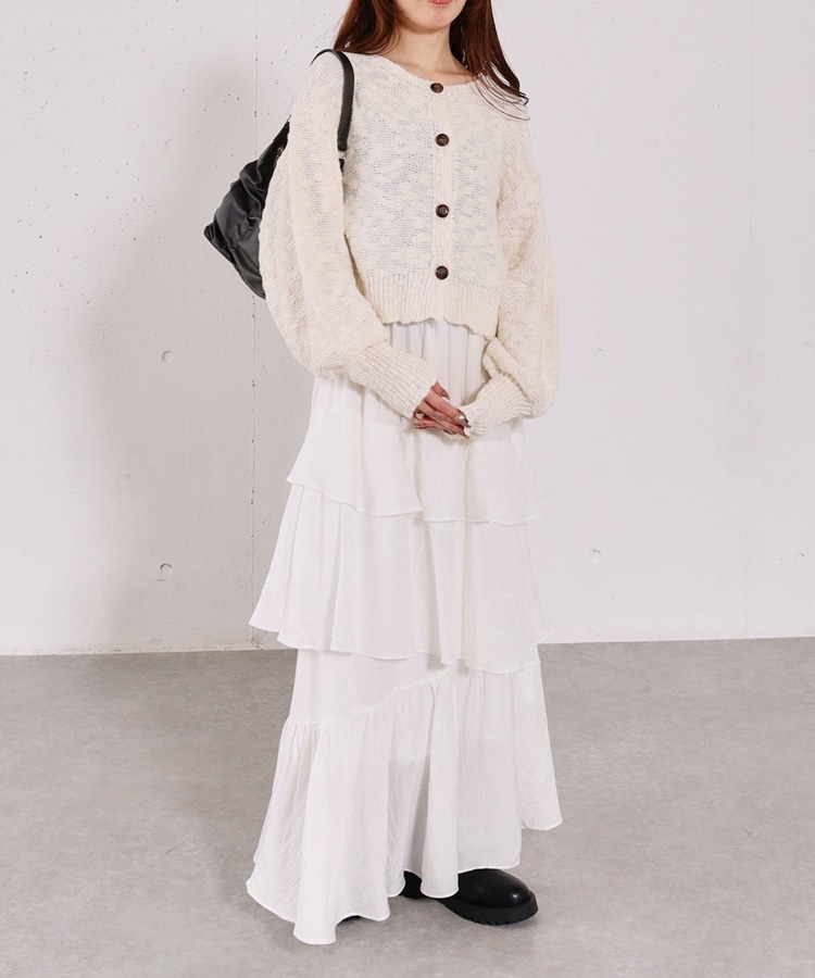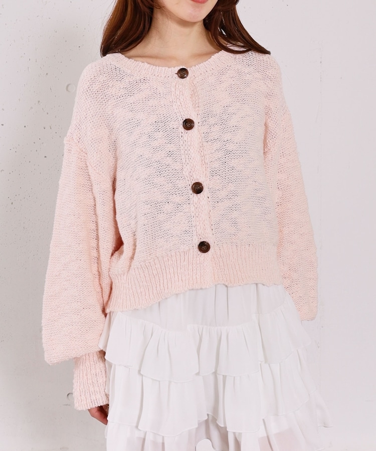 ■やわらかく羽織れる、春気分カーディガン■【デザイン】・ざっくりとした編み地が、ナチュラルで抜け感のある印象に・袖口がキュッと締まったポワン袖デザインで、ゆったり女性らしく・全体はリラックス感のあるサイズ感・柔らかいカラー展開で、春らしい軽やかな雰囲気に【素材感】・柔らかく肌当たりが優しい生地感・ざっくり編みながらも軽さがあり、長時間着てもストレスフリー・厚すぎず薄すぎない程よい生地感で、季節の変わり目にも・カーディガンとしても羽織りやすい一枚ーーーーーーーーーーーーーーー透け感:あり裏地:なし伸縮性:あり光沢感:なし生地厚さ:普通洗濯方法:手洗い可※詳しいお手入れ方法は商品についているタグをご覧くださいーーーーーーーーーーーーーーー※ご利用のモニター環境により、実際の色味と多少異なる場合がございます。【スタイリング】・デニム合わせでラフな大人カジュアルに・スカート合わせで、やさしい雰囲気なコーデも◎・羽織りとしても、前を閉じてトップス風にも着用可能▼スタッフ別の詳しい着こなしは下のCOORDINATEをチェック