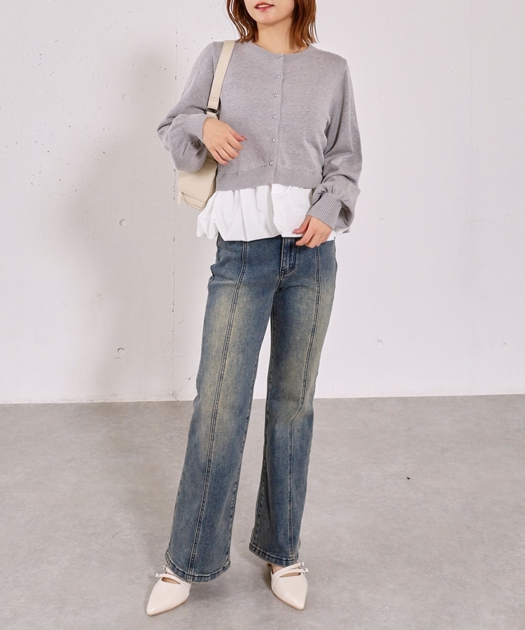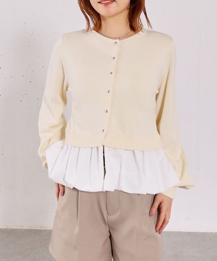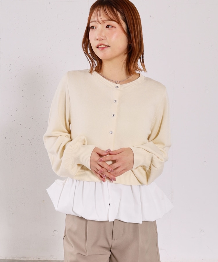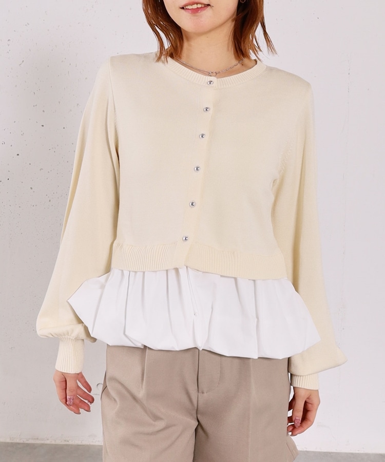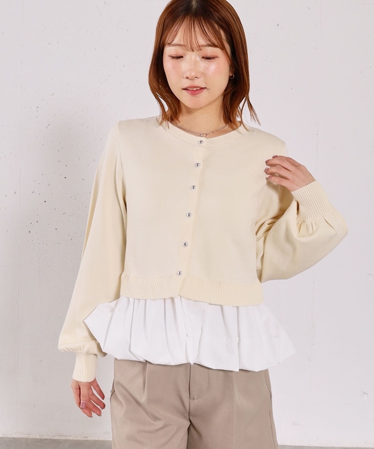 【アンチピリンク】ドッキングバルーンニットカーディガン IVORY