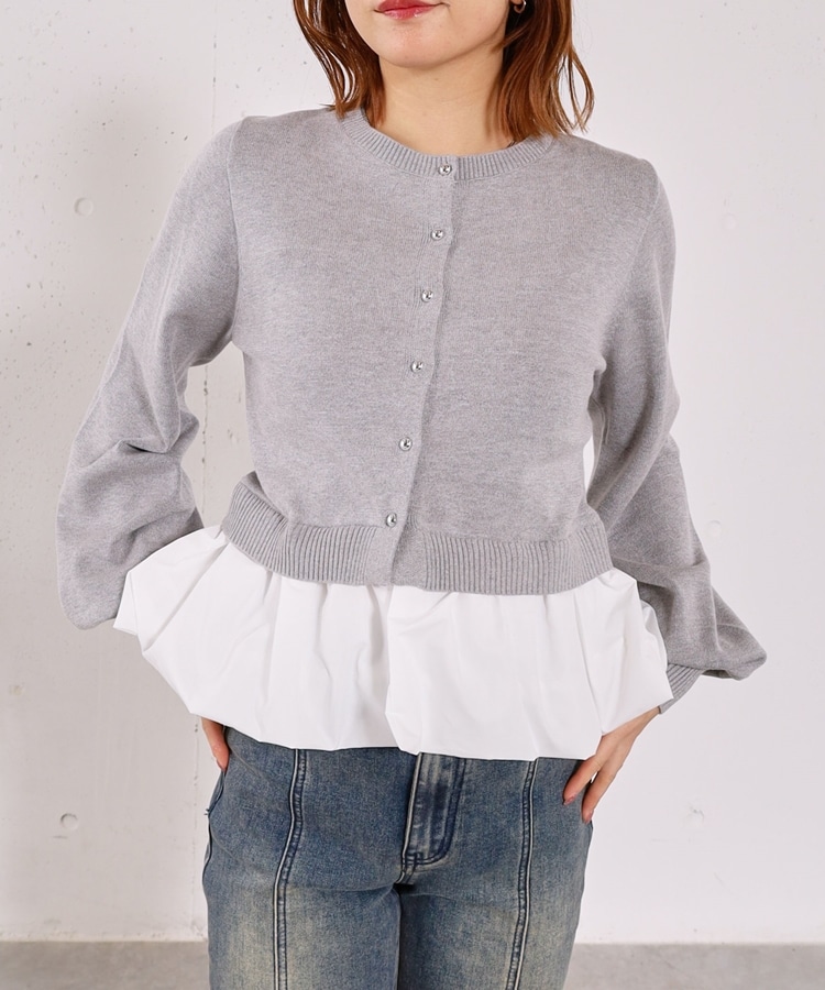 【アンチピリンク】ドッキングバルーンニットカーディガン GRAY