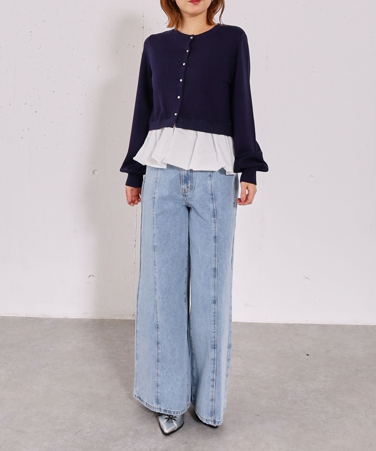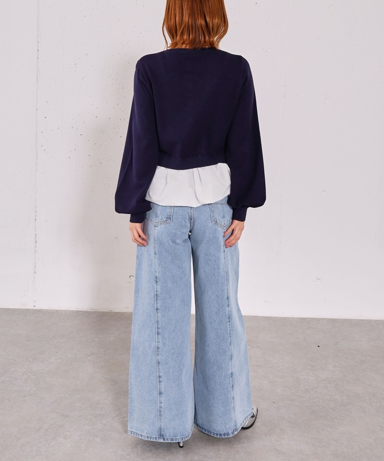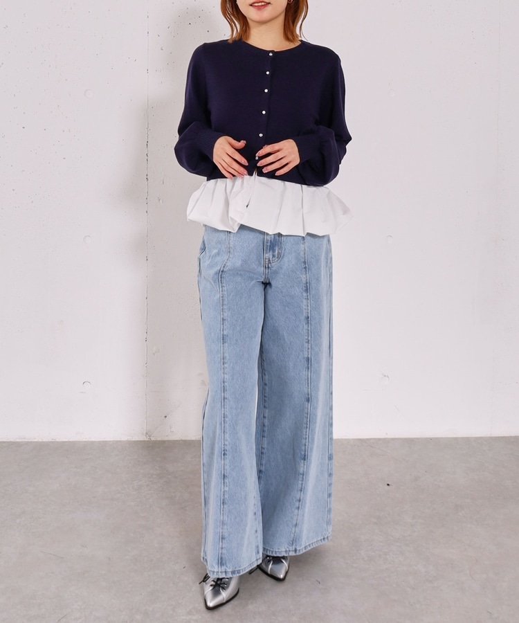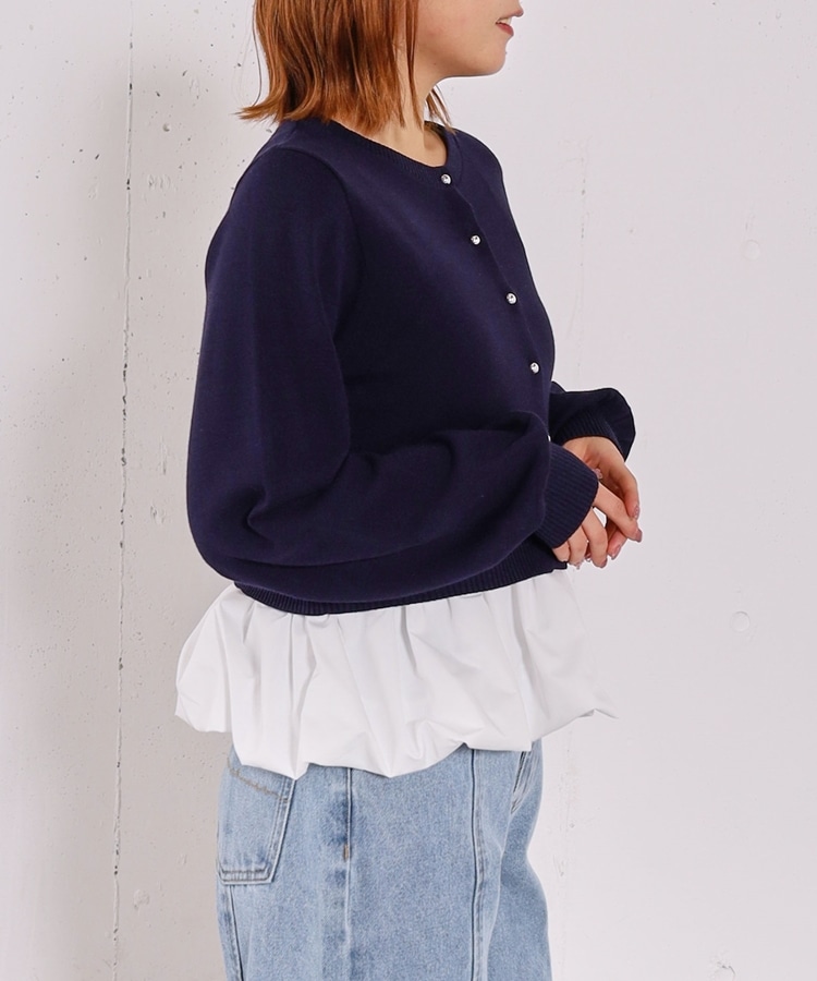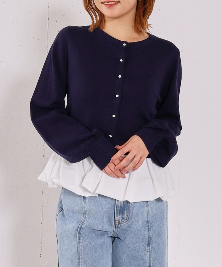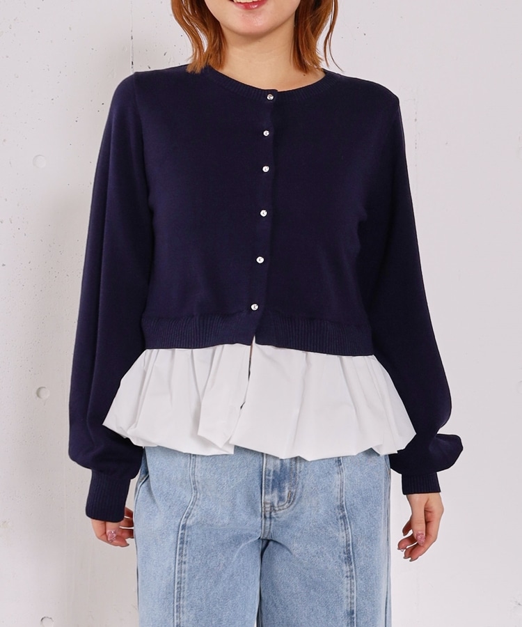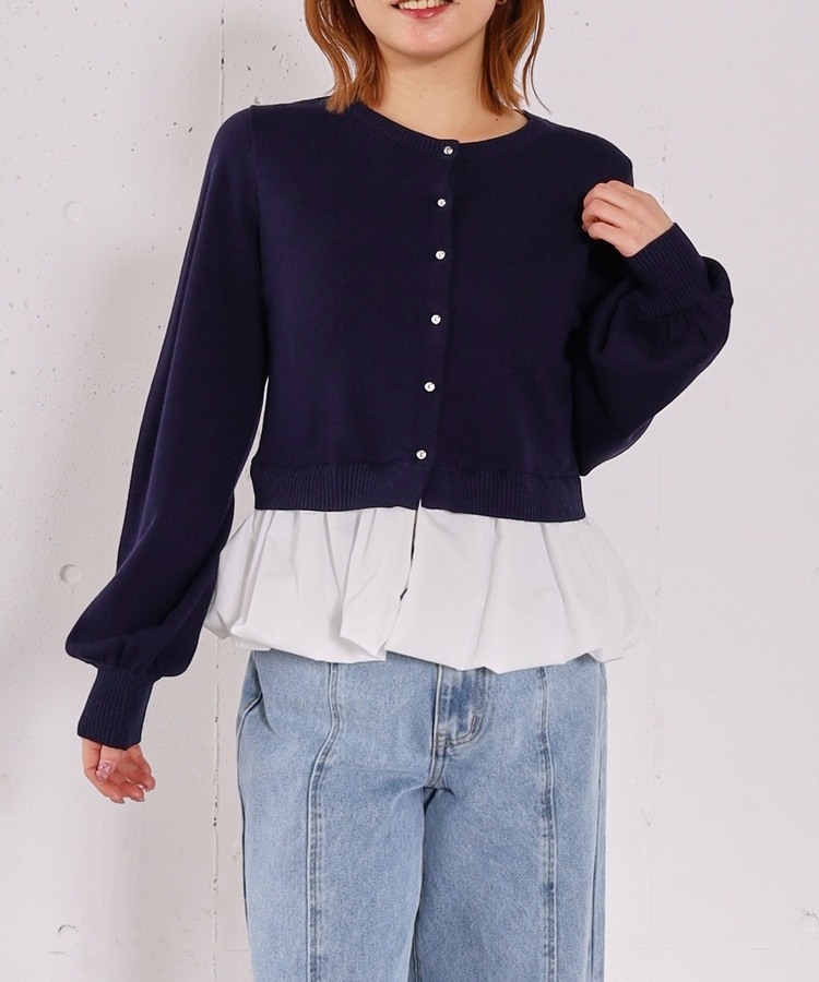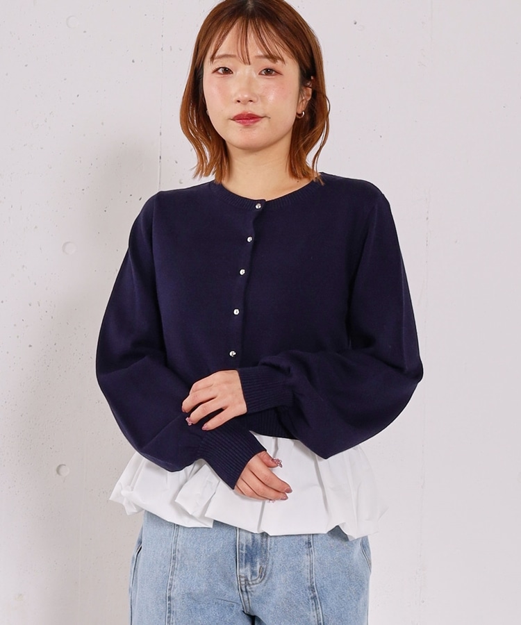 【アンチピリンク】ドッキングバルーンニットカーディガン NAVY