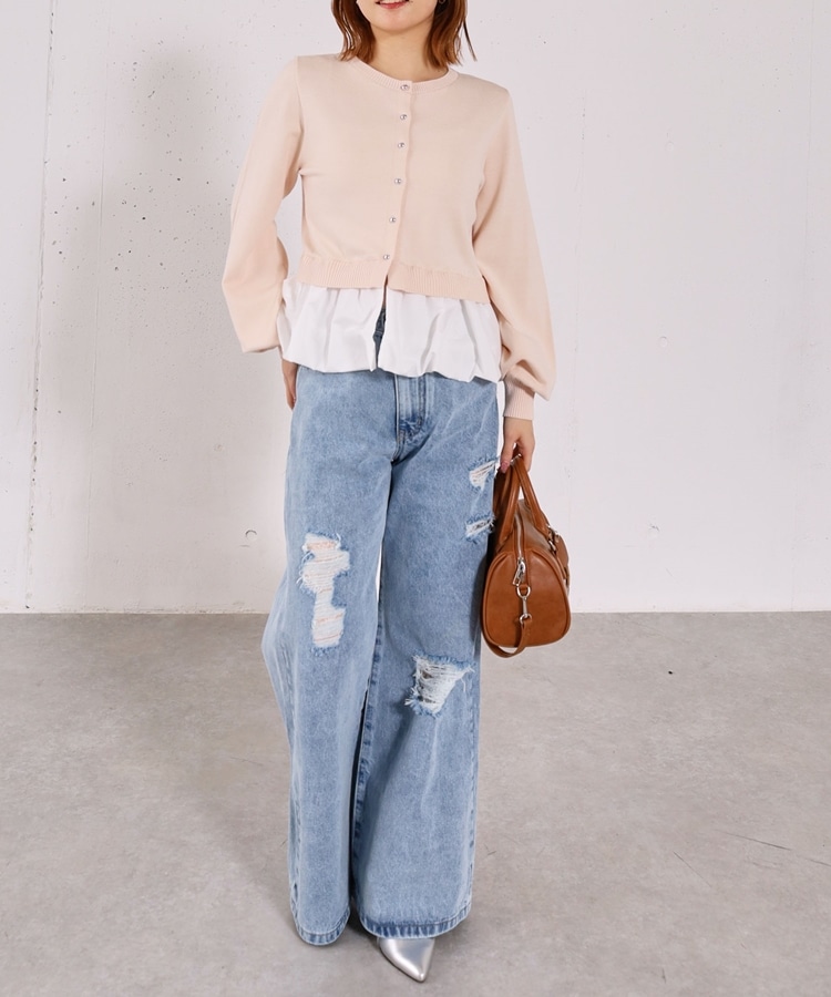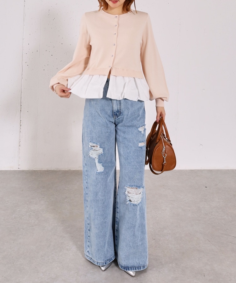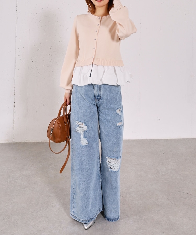 【アンチピリンク】ドッキングバルーンニットカーディガン