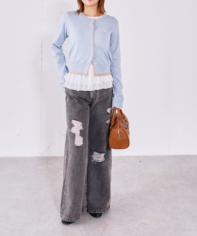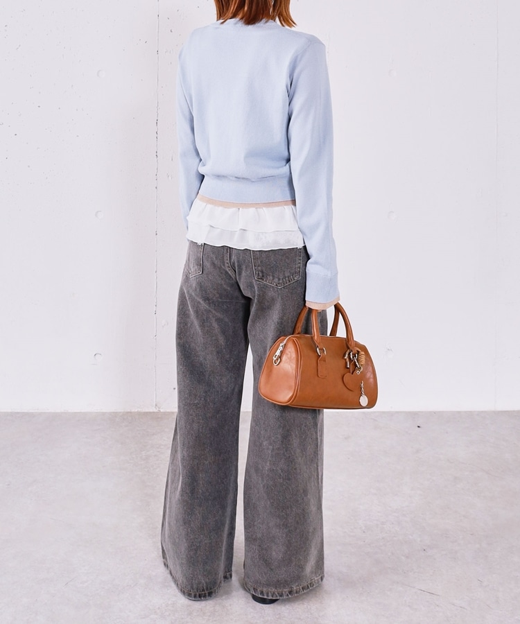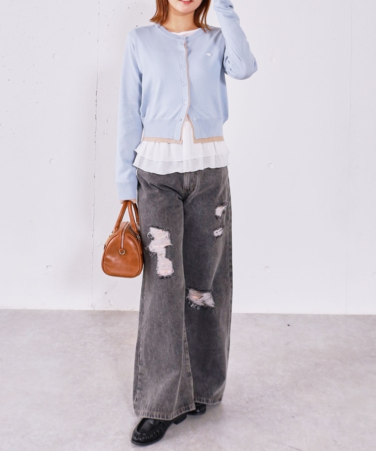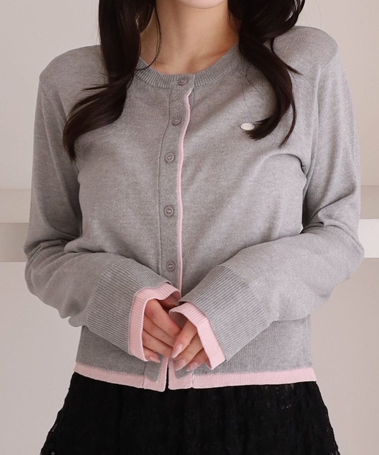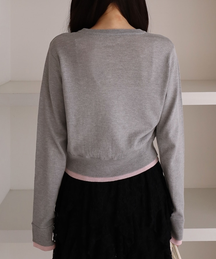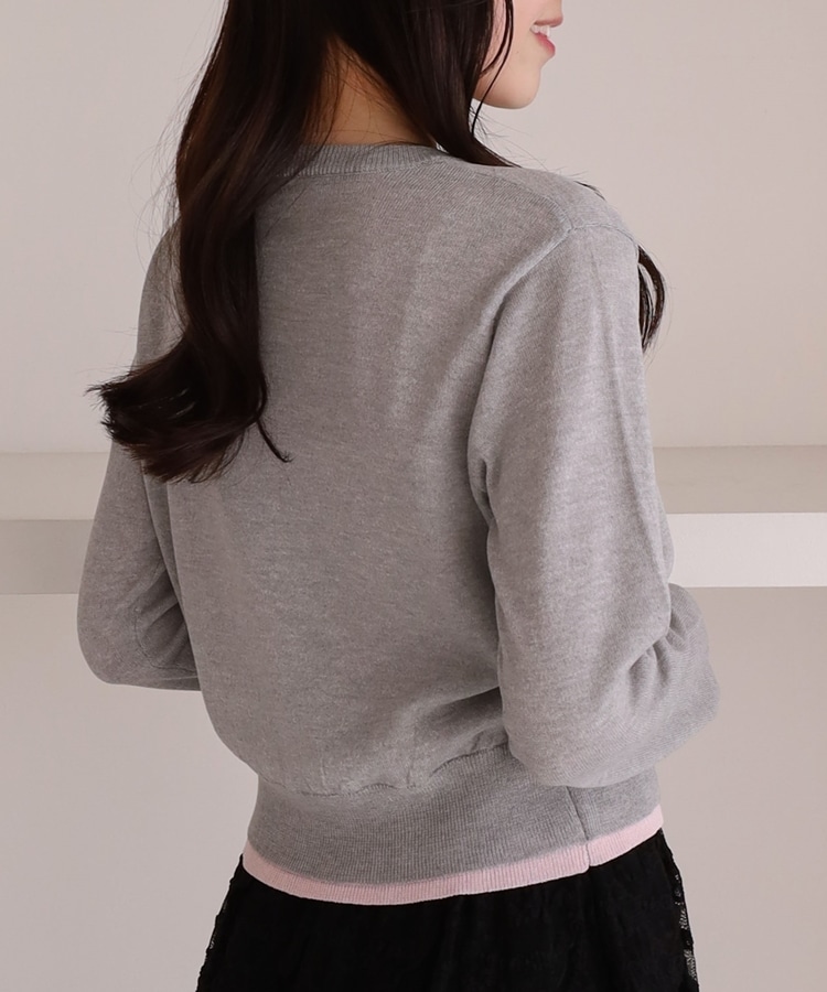 【ONかわ】配色レイヤードニットカーディガン GRAY