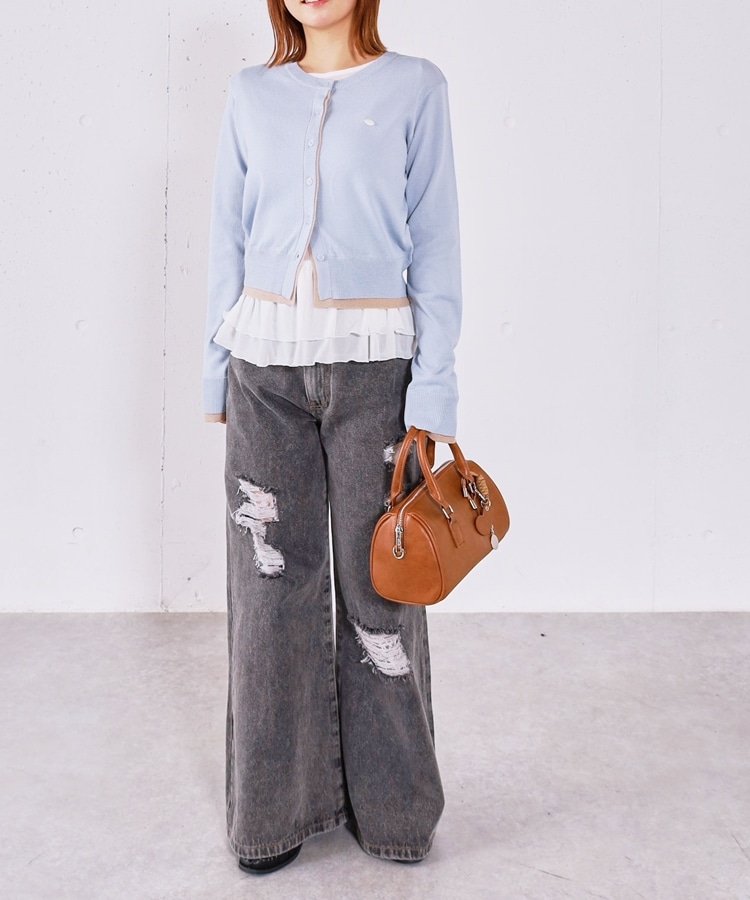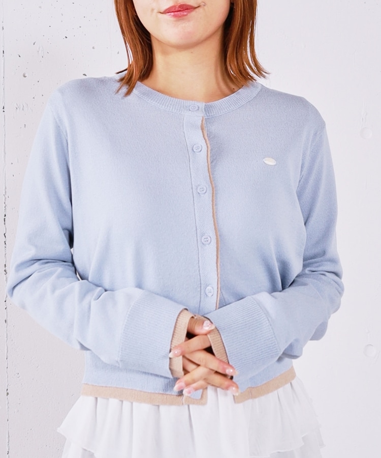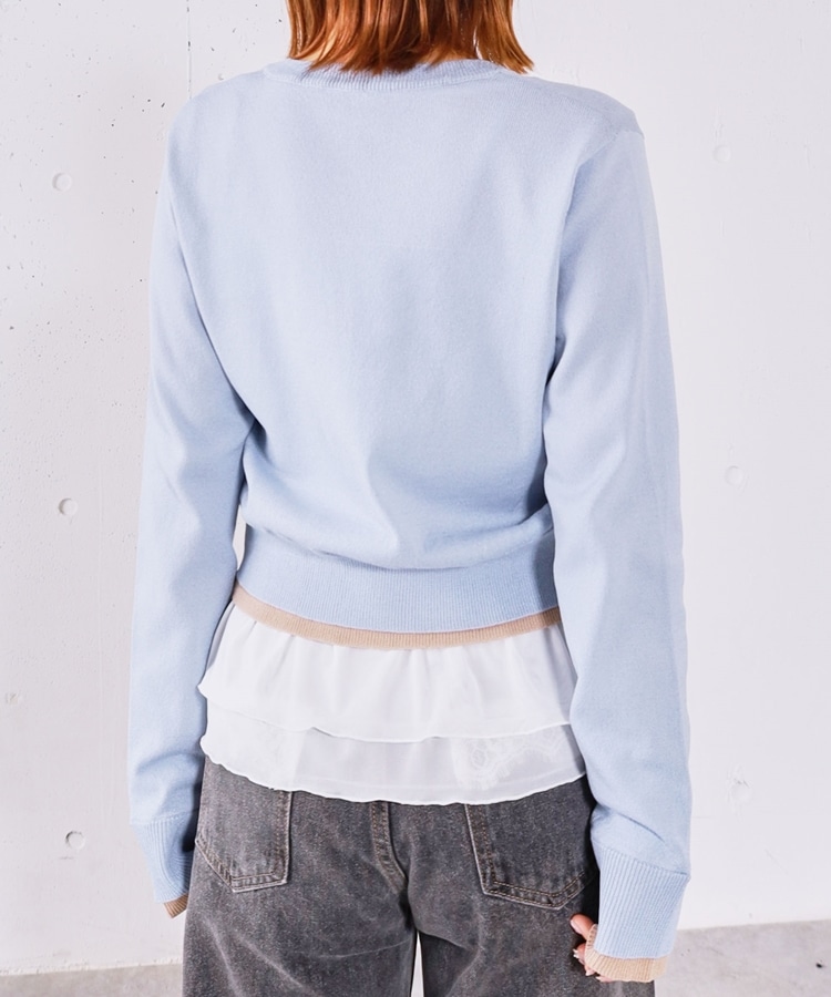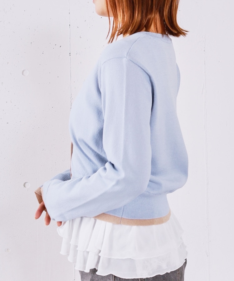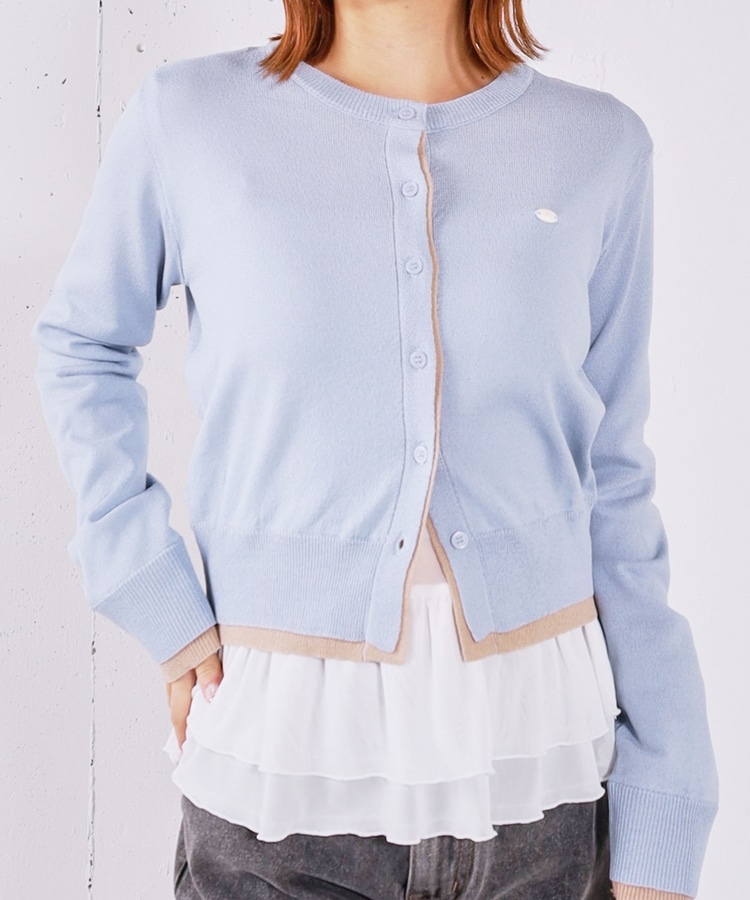 【ONかわ】配色レイヤードニットカーディガン BLUE