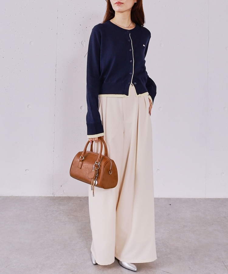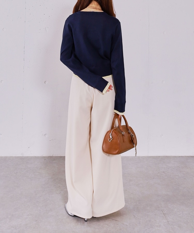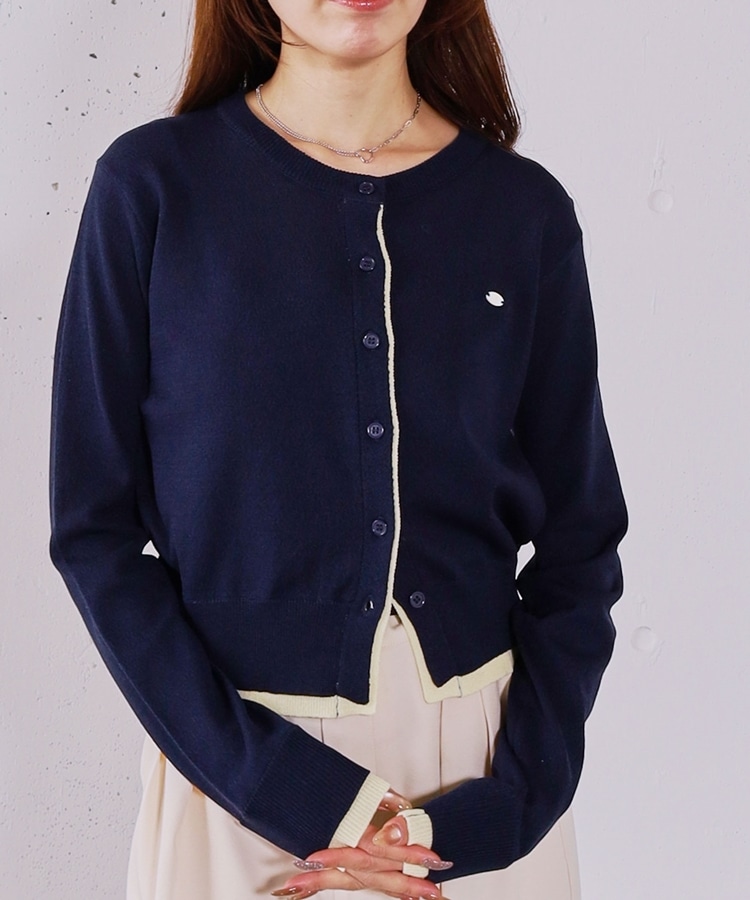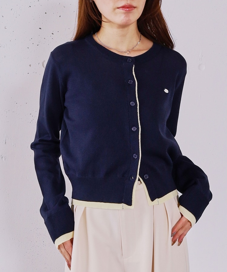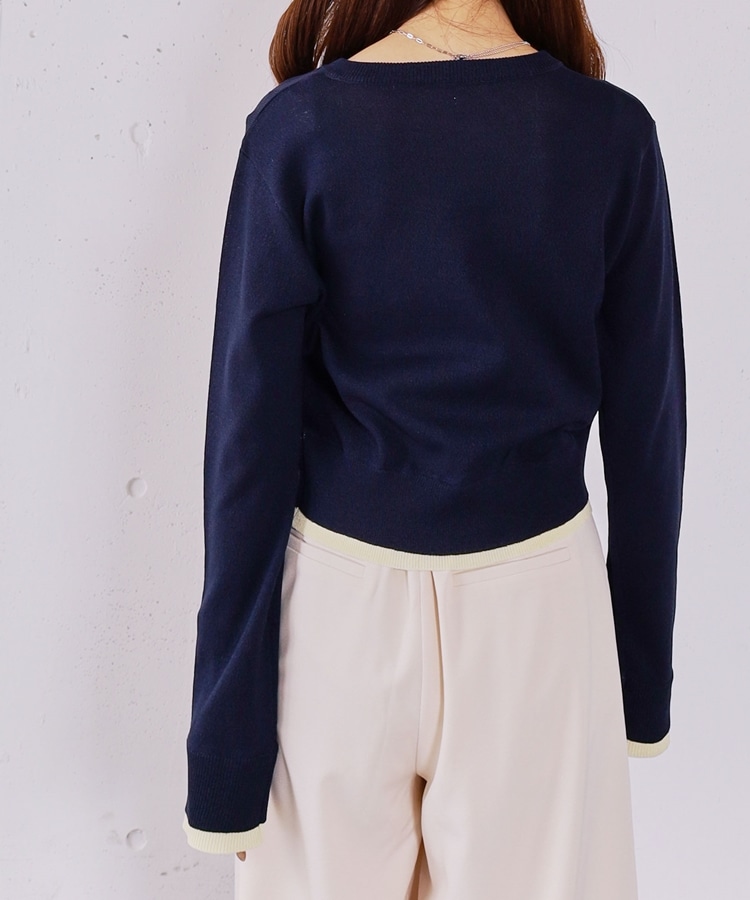 【ONかわ】配色レイヤードニットカーディガン NAVY