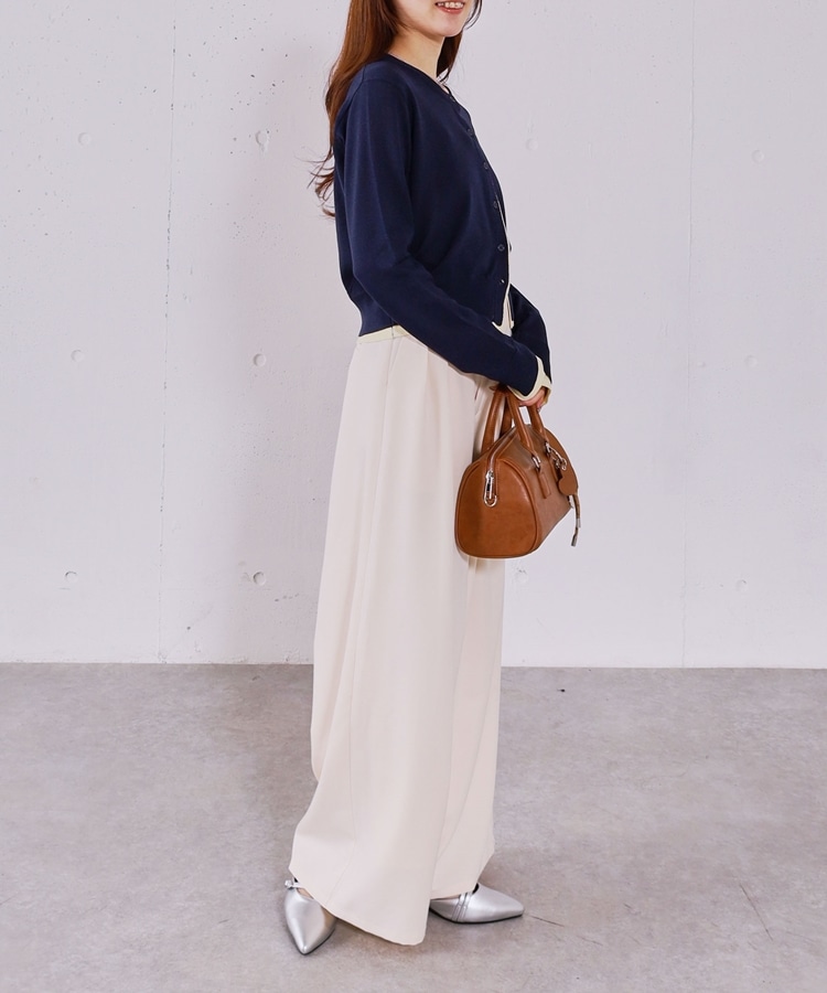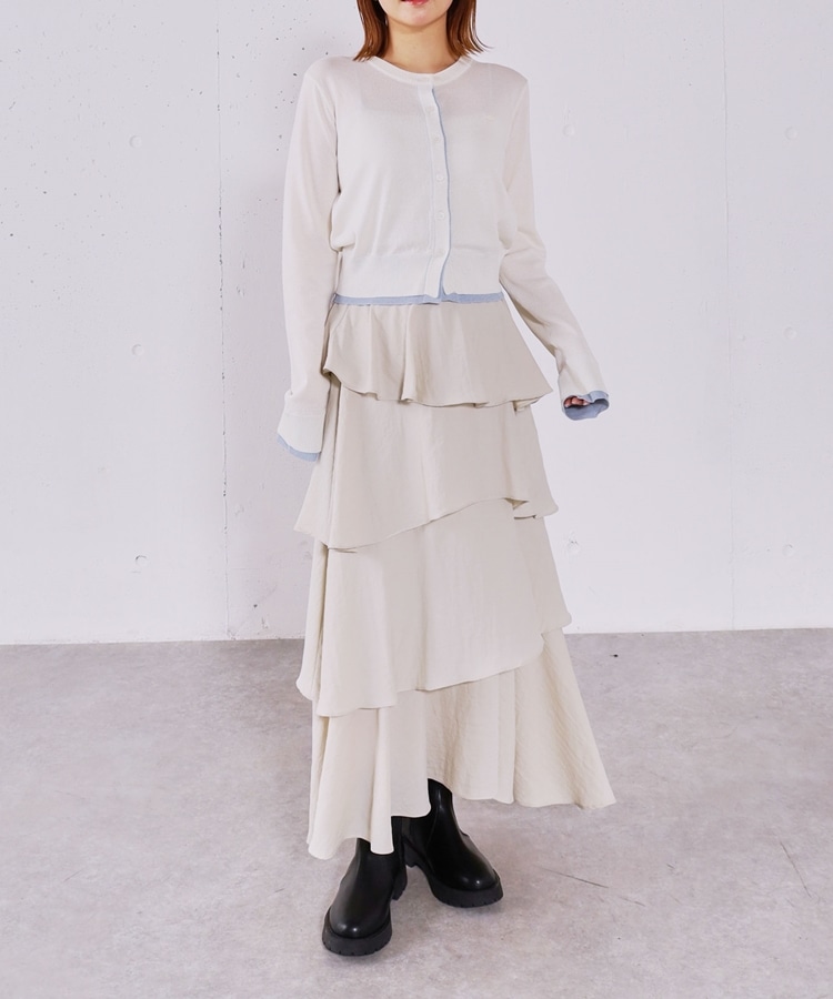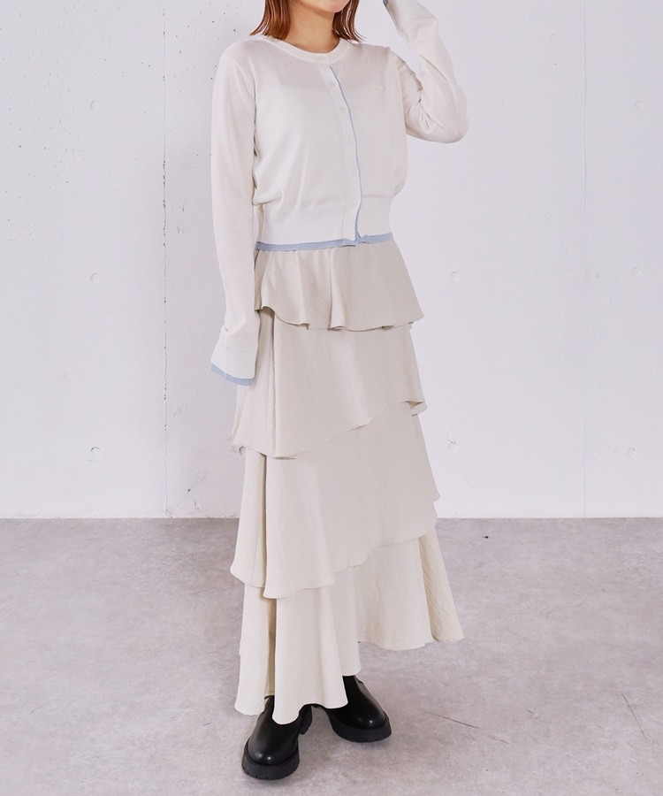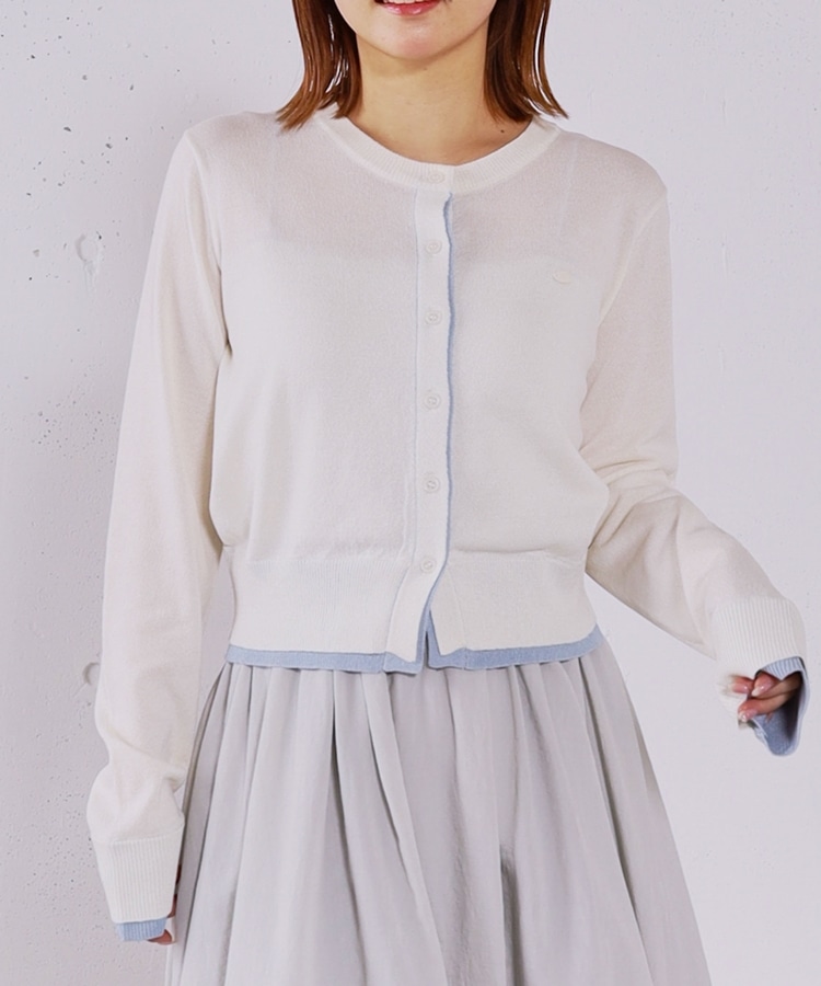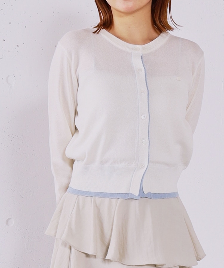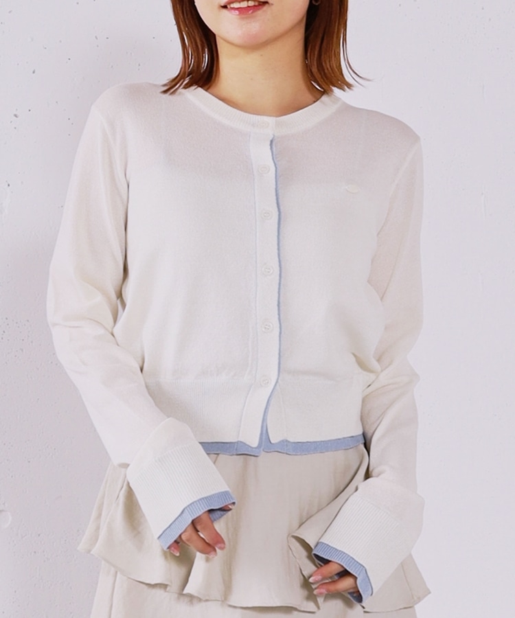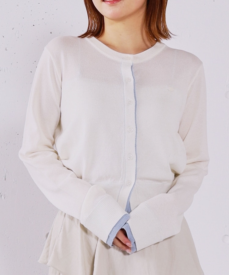 【ONかわ】配色レイヤードニットカーディガン IVORY