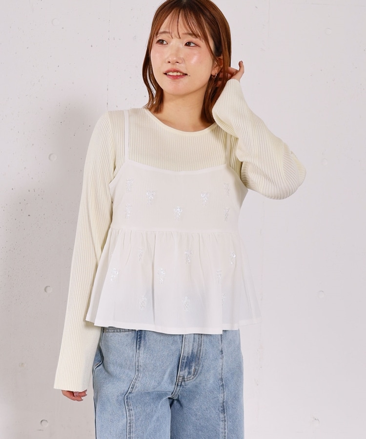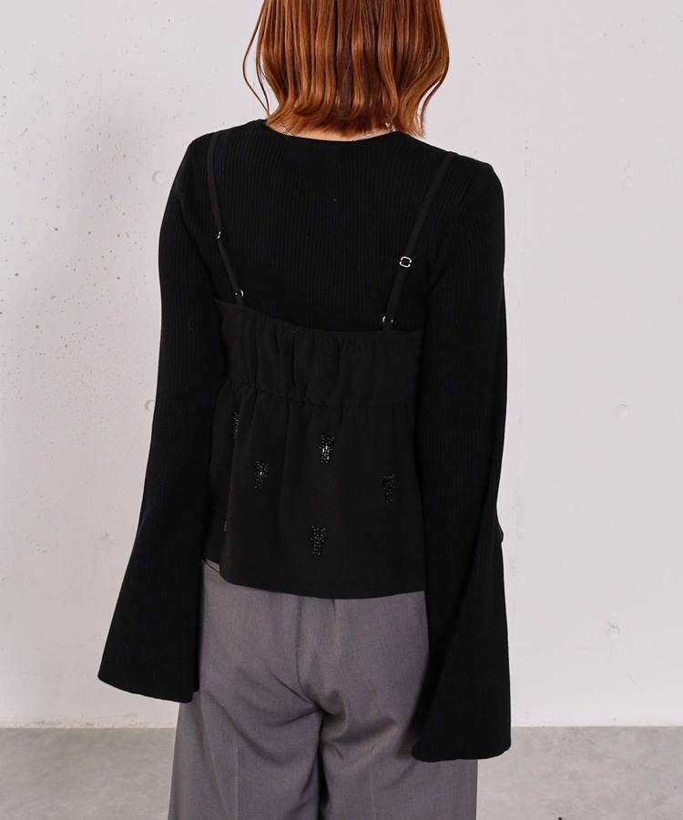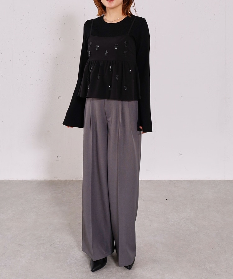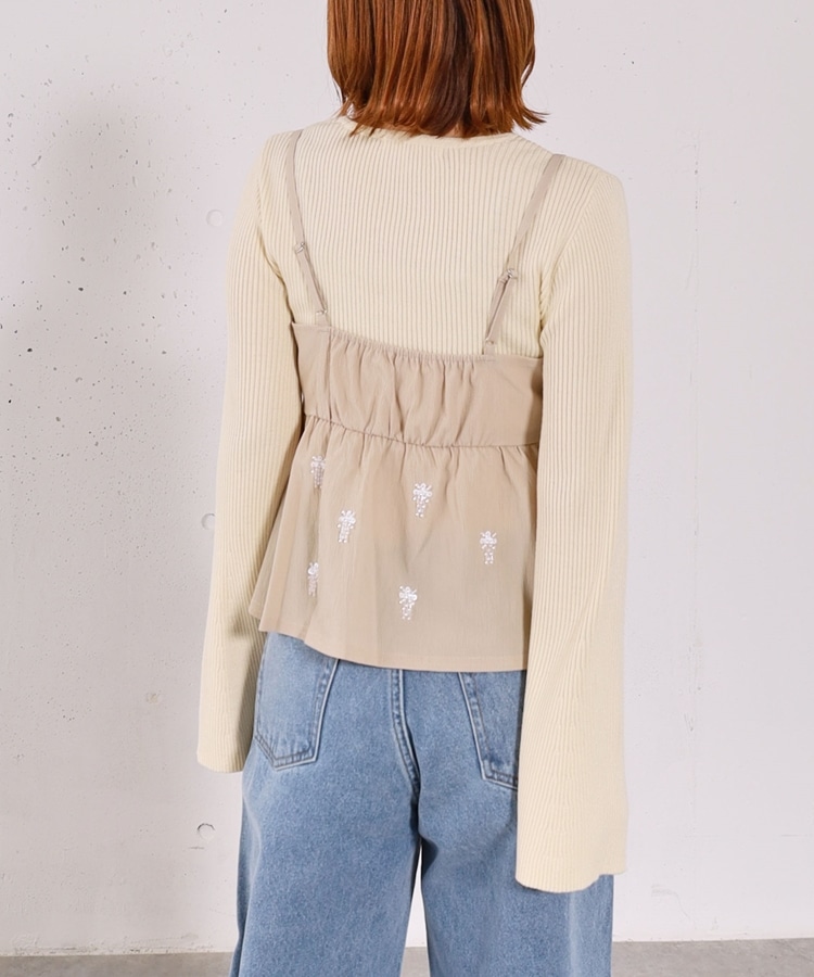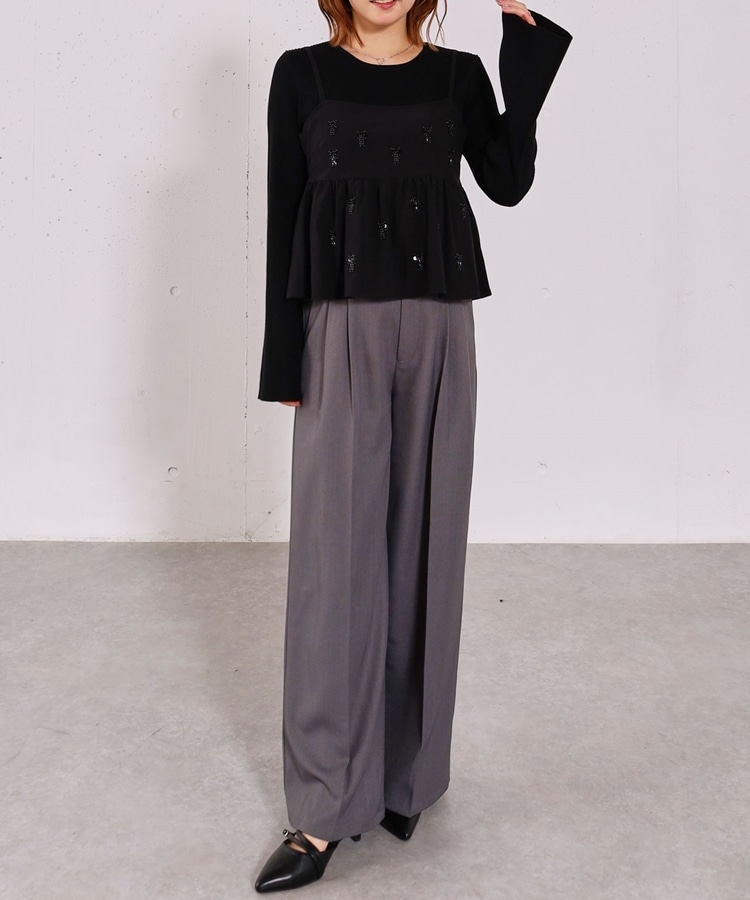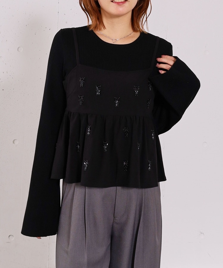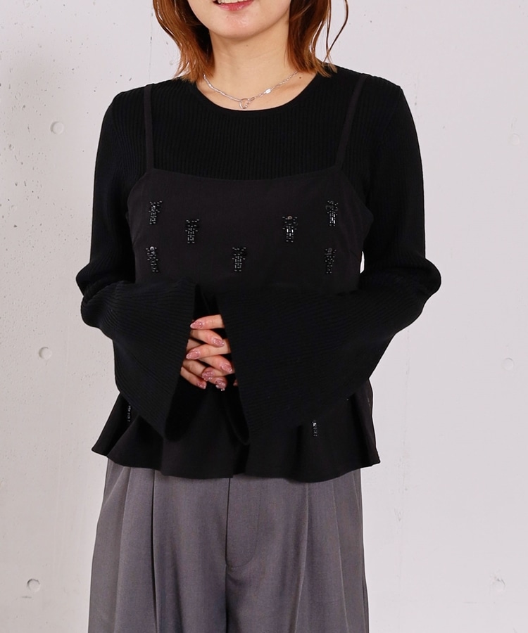 ■着るだけで華やか。ビーズ刺繍レイヤードSET■【デザイン】・ビーズとスパンコールを施した、着映えするペプラムビスチェセット・立体感のあるビーズ刺繍で、甘くなりすぎず大人っぽい印象・ペプラムシルエットが自然にウエスト位置を高く見せてくれます・リブニットはフレアスリーブで、腕をすらっと綺麗に見せてくれるデザイン【素材感】・ビスチェはややハリのある素材で、シルエットを美しくキープ・リブニットは柔らかく伸縮性があり、肌当たりの良い着心地ーーーーーーーーーーーーーーー透け感:なし裏地:なし伸縮性:あり光沢感:なし生地厚さ:普通洗濯方法:手洗い可※詳しいお手入れ方法は商品についているタグをご覧くださいーーーーーーーーーーーーーーー※ご利用のモニター環境により、実際の色味と多少異なる場合がございます。【スタイリング】・セットで着るだけで、華やかなレイヤードコーデが完成・デニム合わせで程よくカジュアルダウンした大人コーデに・スラックスやスカート合わせで、きれいめなスタイリングもおすすめ▼スタッフ別の詳しい着こなしは下のCOORDINATEをチェック