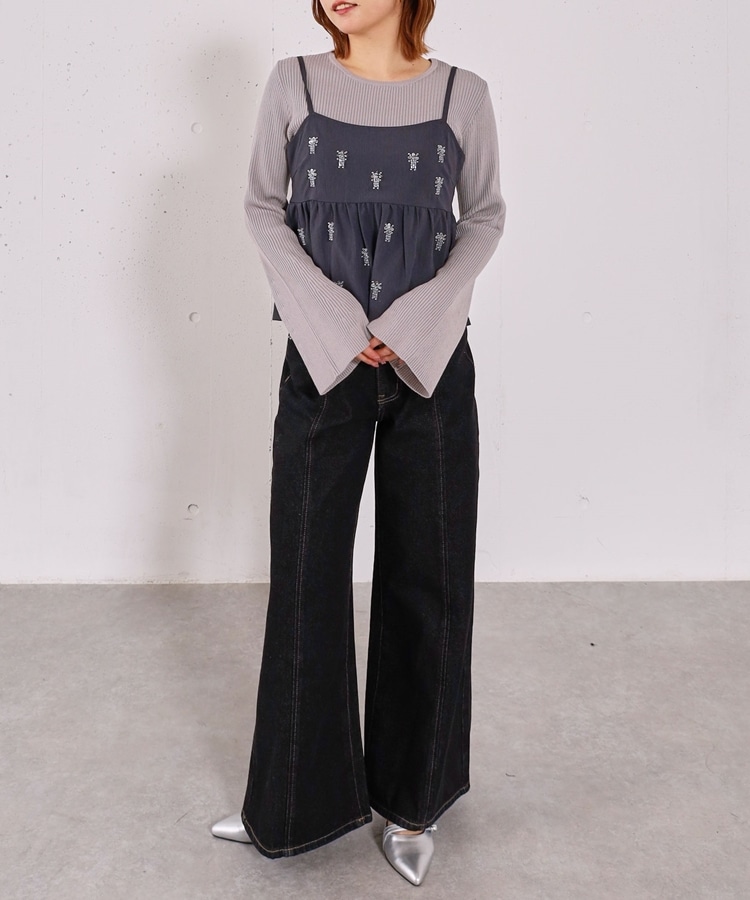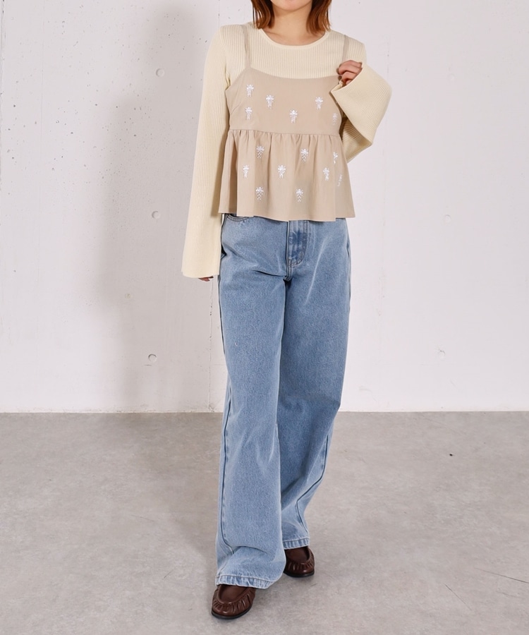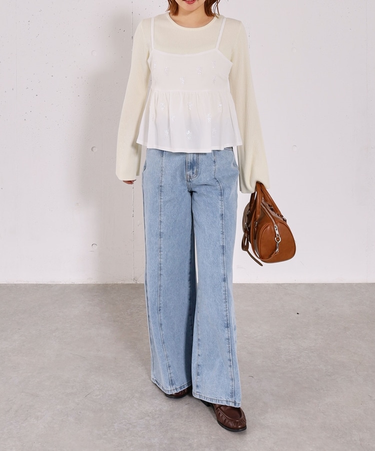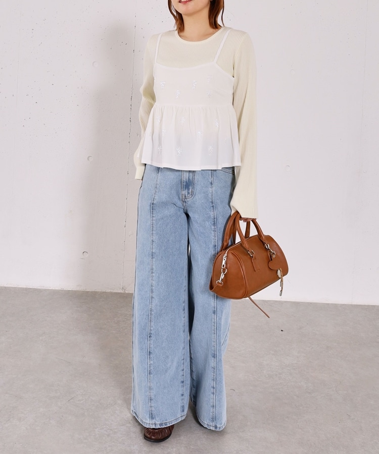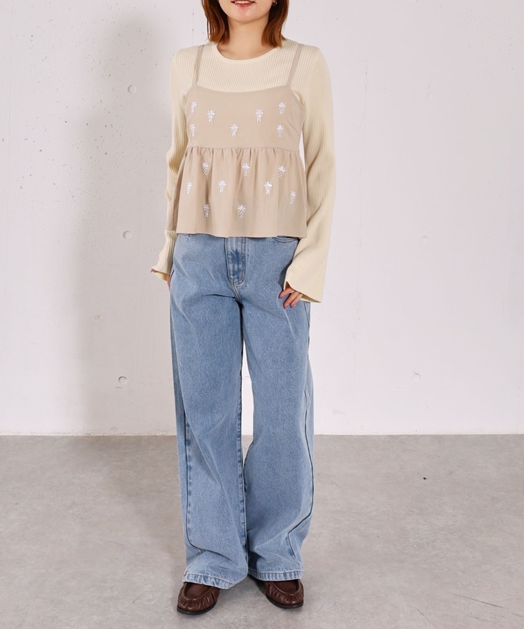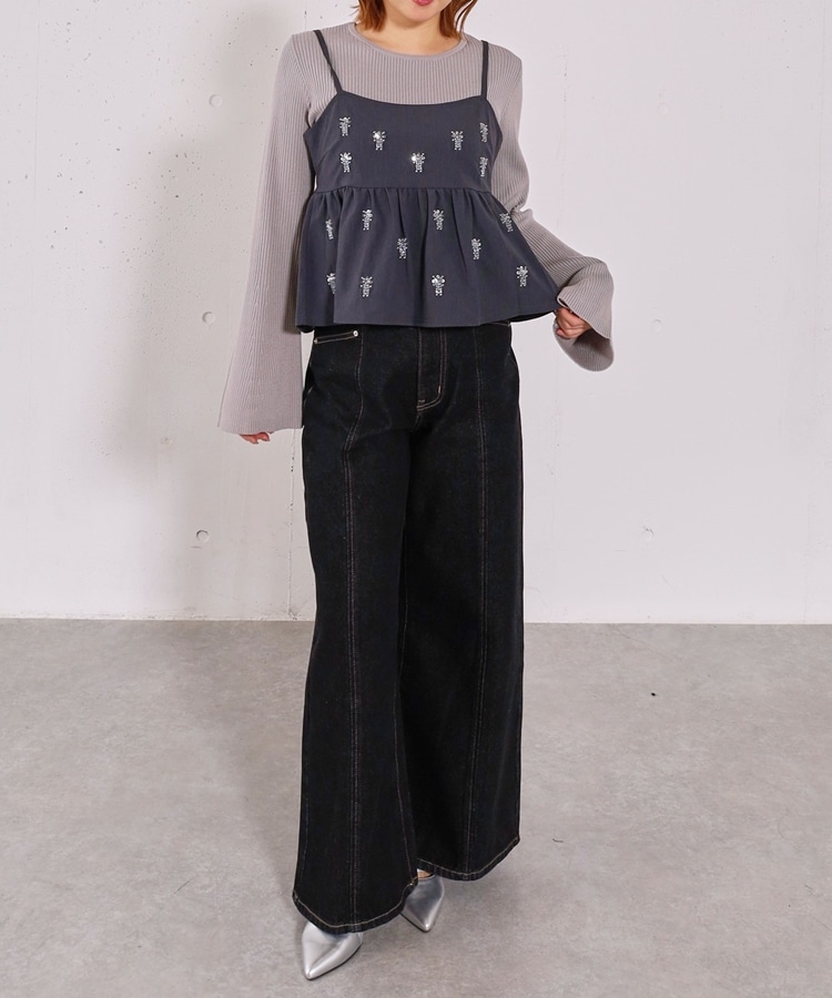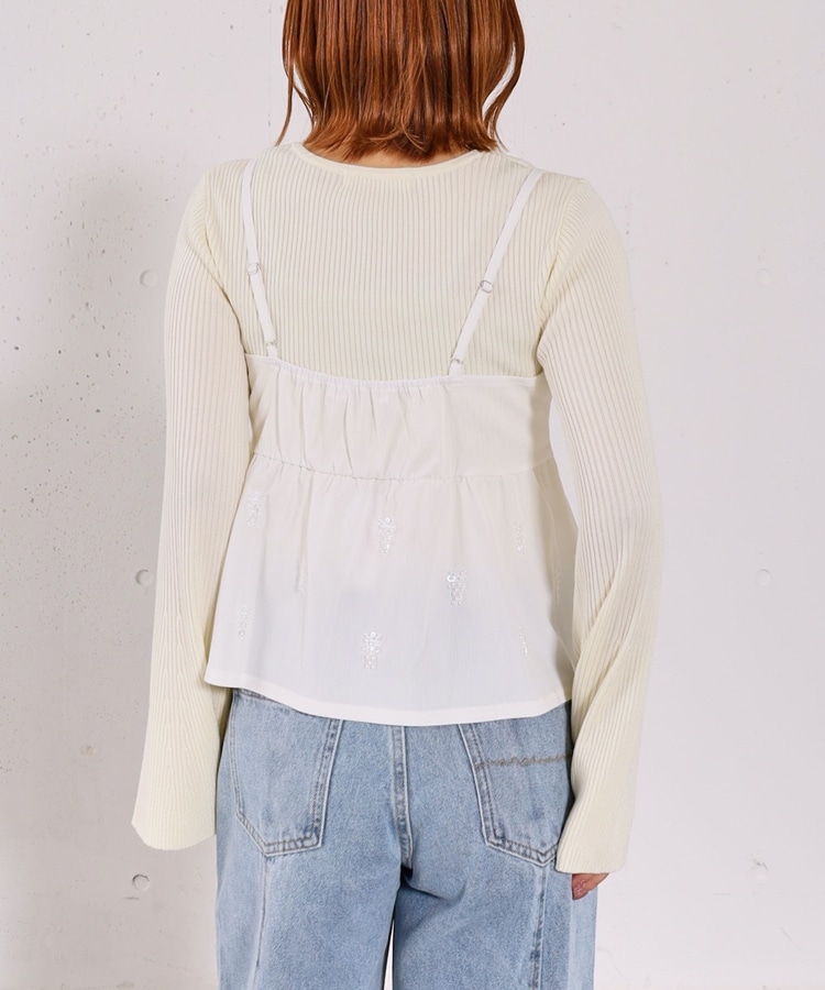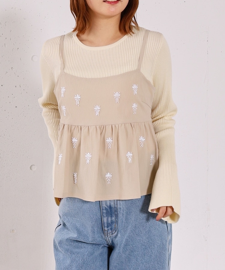 ■着るだけで華やか。ビーズ刺繍レイヤードSET■【デザイン】・ビーズとスパンコールを施した、着映えするペプラムビスチェセット・立体感のあるビーズ刺繍で、甘くなりすぎず大人っぽい印象・ペプラムシルエットが自然にウエスト位置を高く見せてくれます・リブニットはフレアスリーブで、腕をすらっと綺麗に見せてくれるデザイン【素材感】・ビスチェはややハリのある素材で、シルエットを美しくキープ・リブニットは柔らかく伸縮性があり、肌当たりの良い着心地ーーーーーーーーーーーーーーー透け感:なし裏地:なし伸縮性:あり光沢感:なし生地厚さ:普通洗濯方法:手洗い可※詳しいお手入れ方法は商品についているタグをご覧くださいーーーーーーーーーーーーーーー※ご利用のモニター環境により、実際の色味と多少異なる場合がございます。【スタイリング】・セットで着るだけで、華やかなレイヤードコーデが完成・デニム合わせで程よくカジュアルダウンした大人コーデに・スラックスやスカート合わせで、きれいめなスタイリングもおすすめ▼スタッフ別の詳しい着こなしは下のCOORDINATEをチェック
