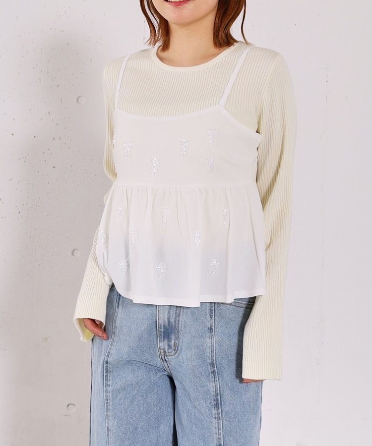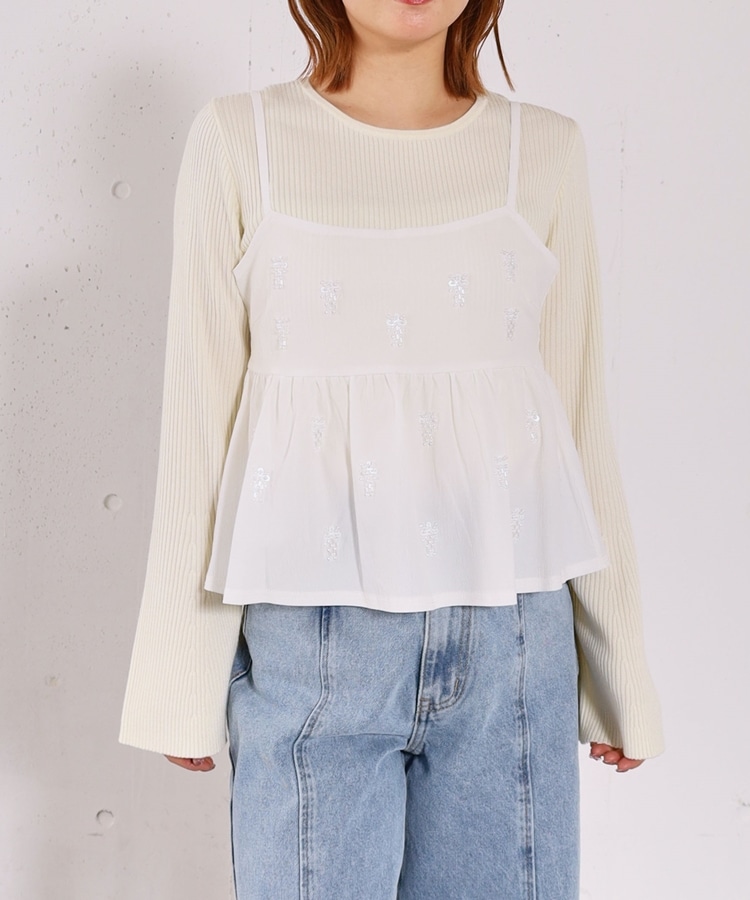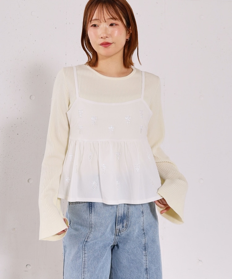ビーズ刺繍ペプラムビスチェ×リブニットプルオーバーSET