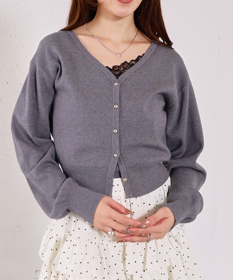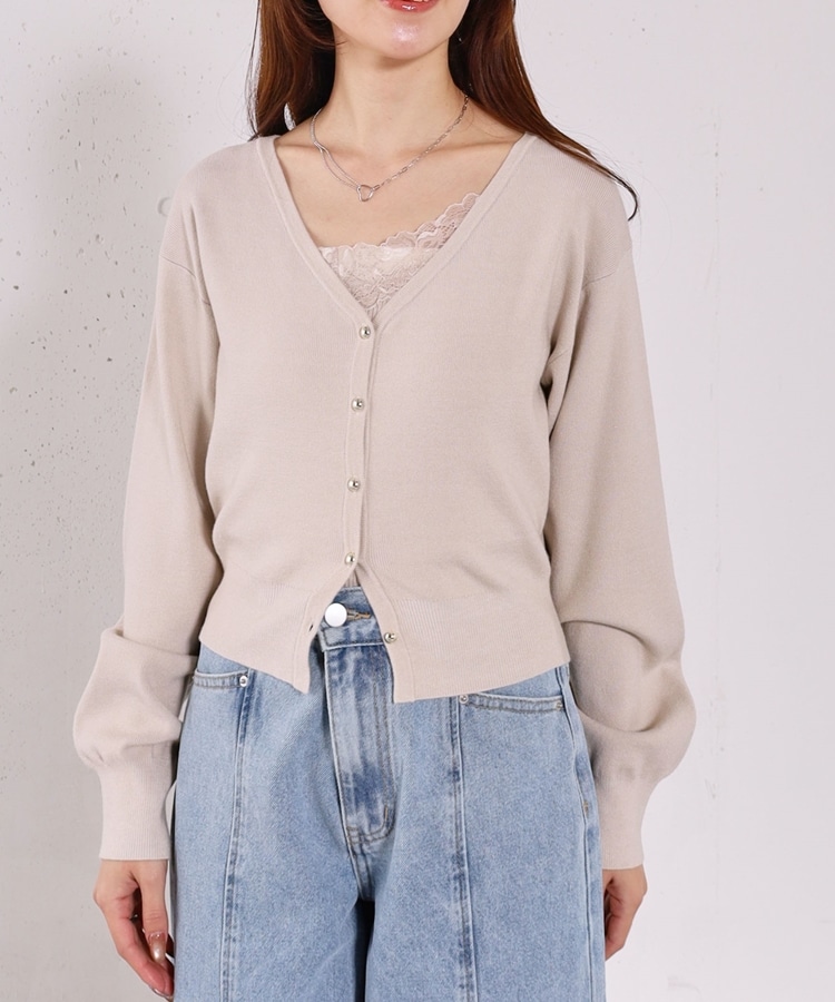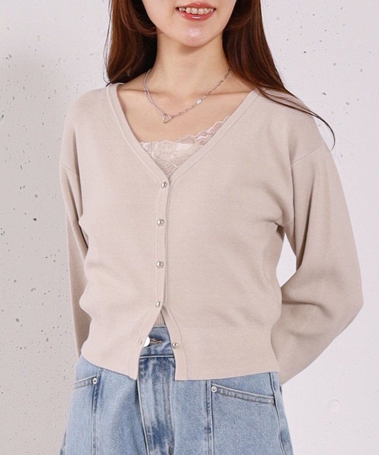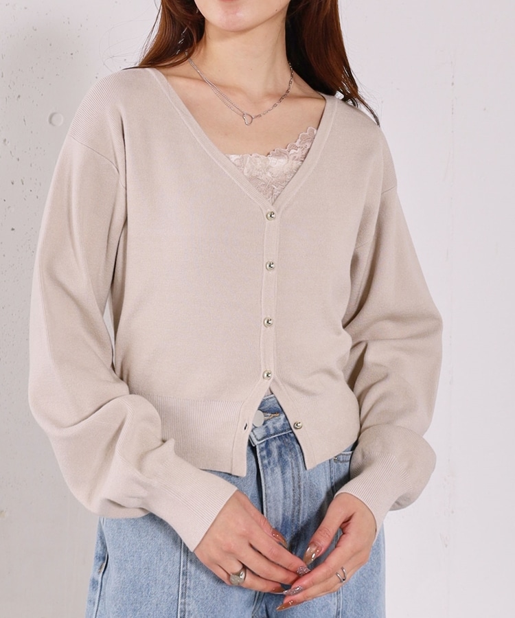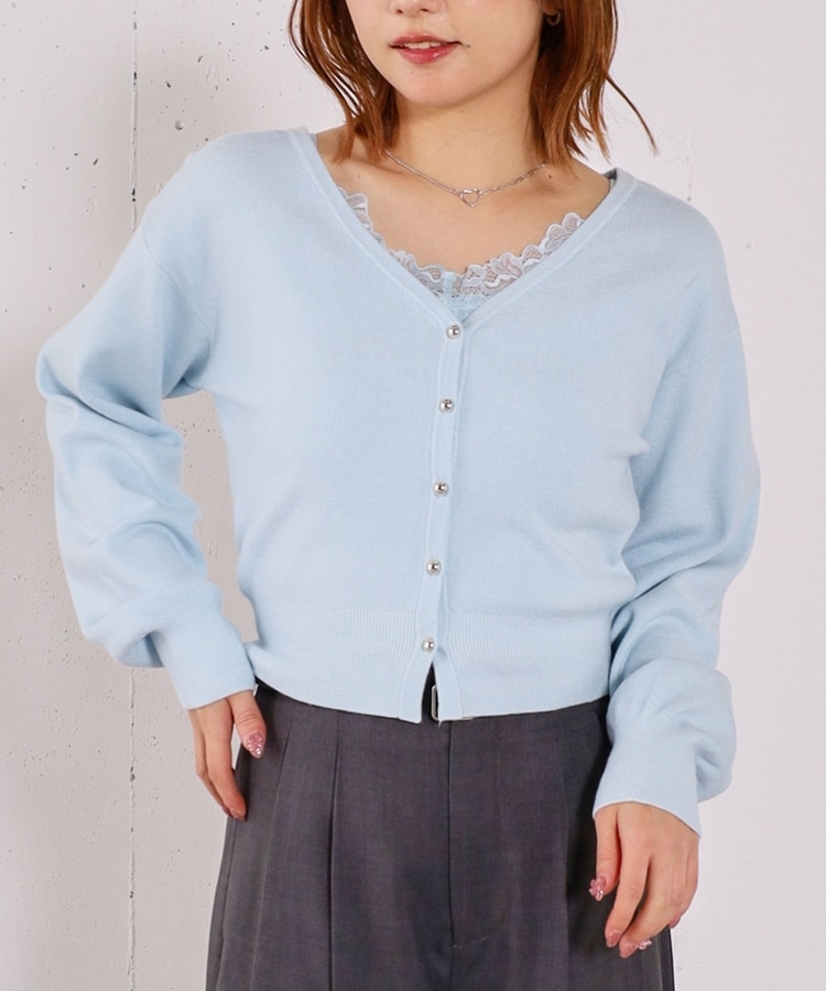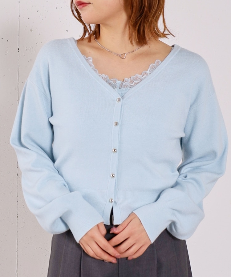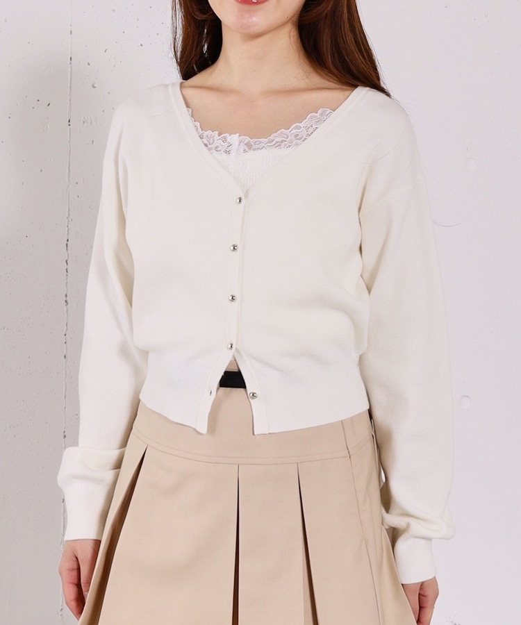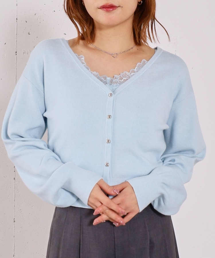 ・襟元のレースのインナーとカーディガンのセットアイテム