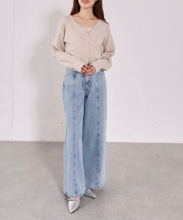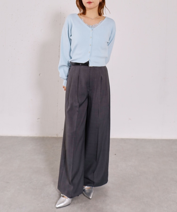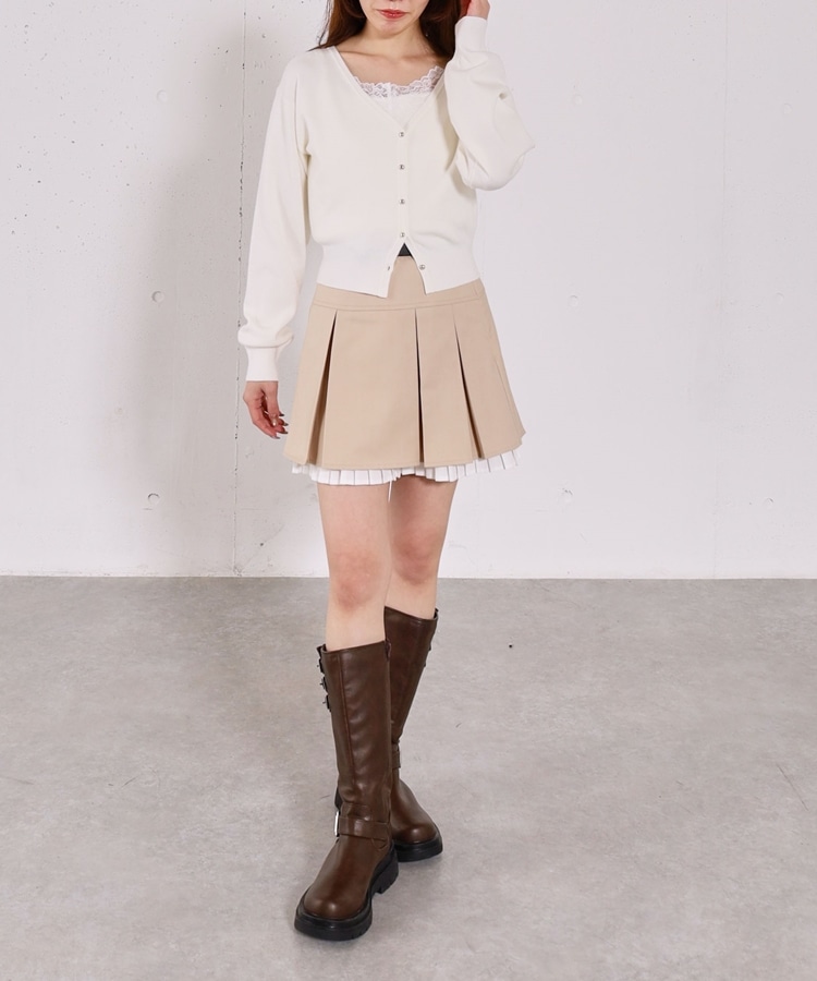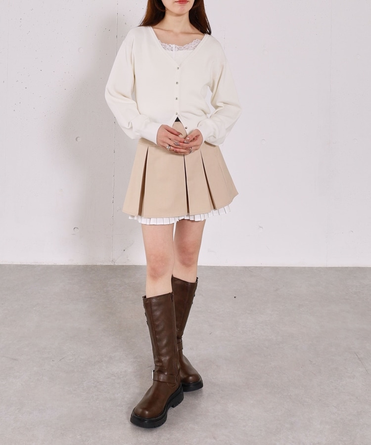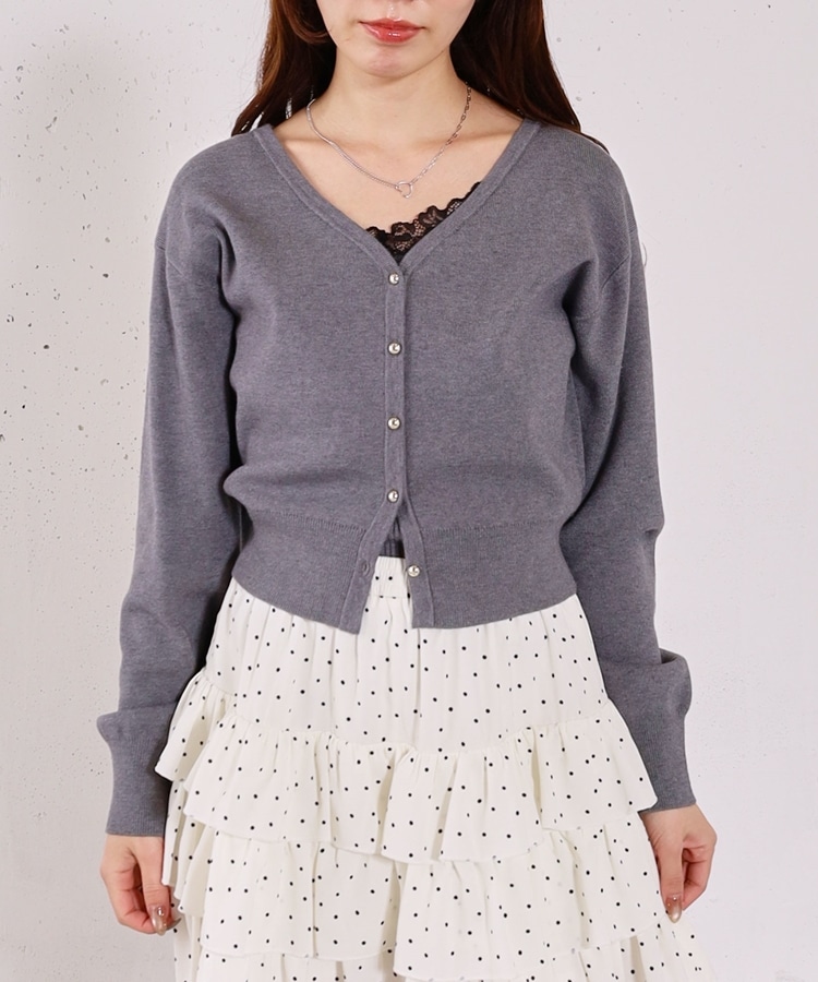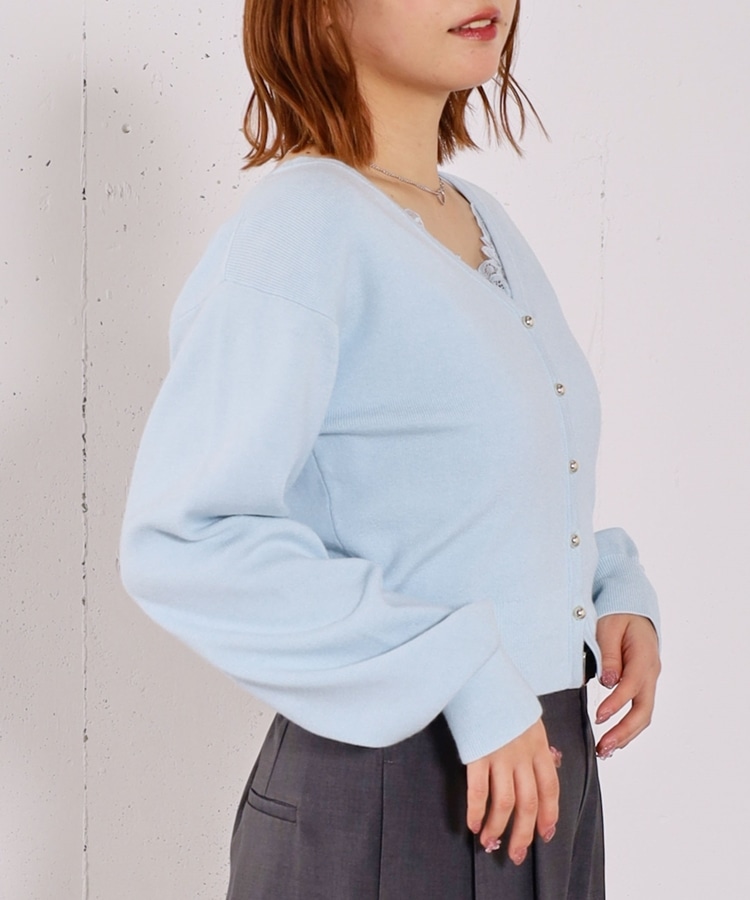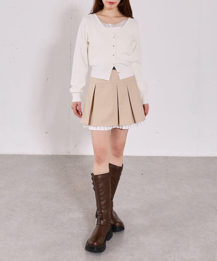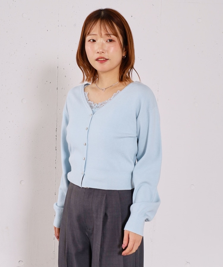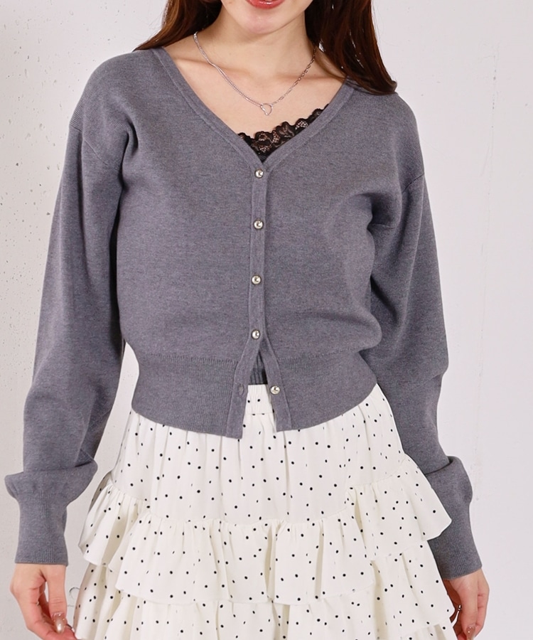 ・襟元のレースのインナーとカーディガンのセットアイテム