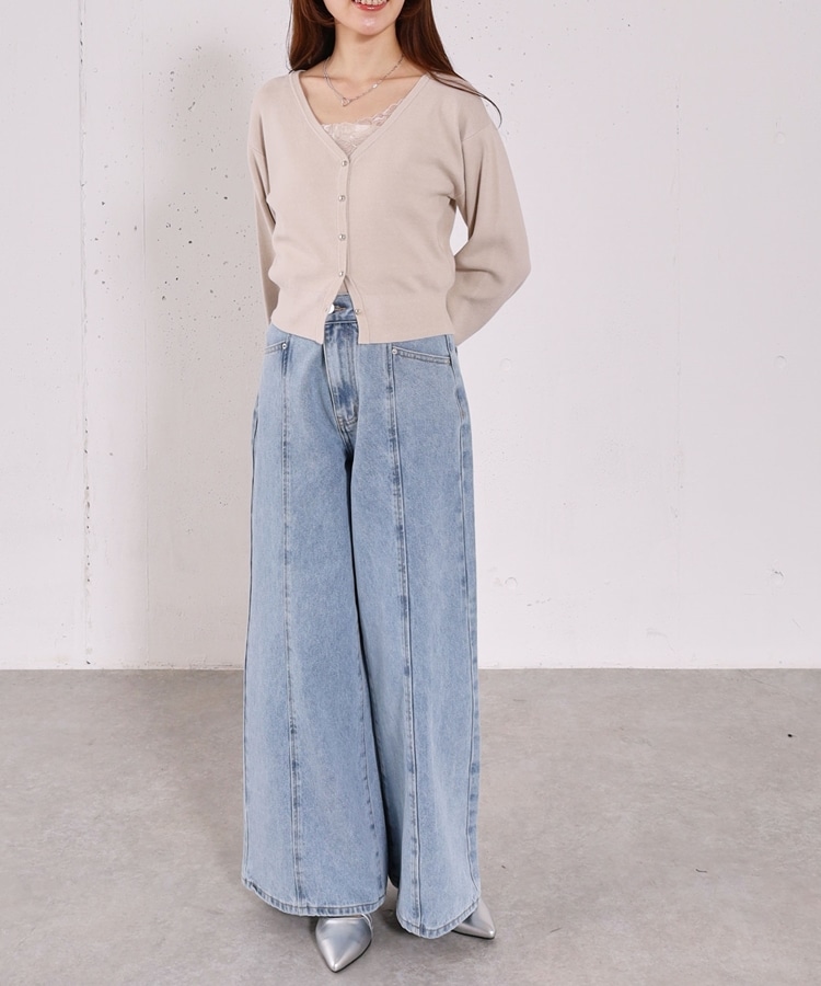 ・小さめボタンがアクセントになりシンプルなボトムに合わせるだけでコーデが完成!