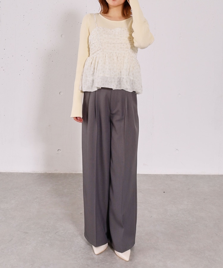 ・スラックス合わせで、甘さを抑えた大人っぽいスタイリングも◎