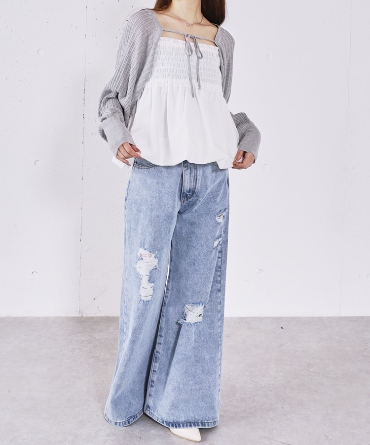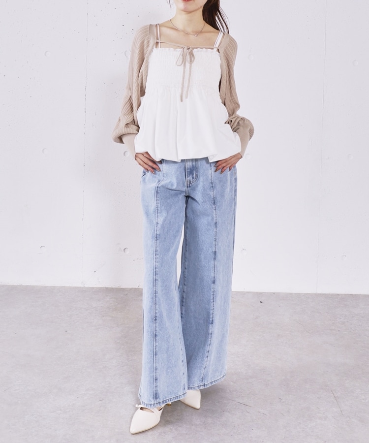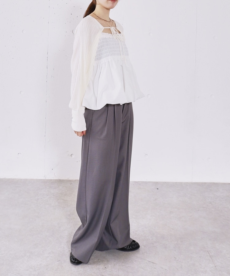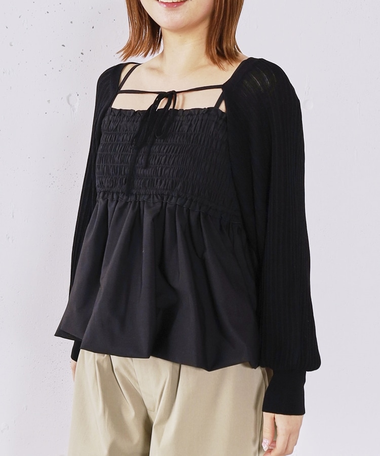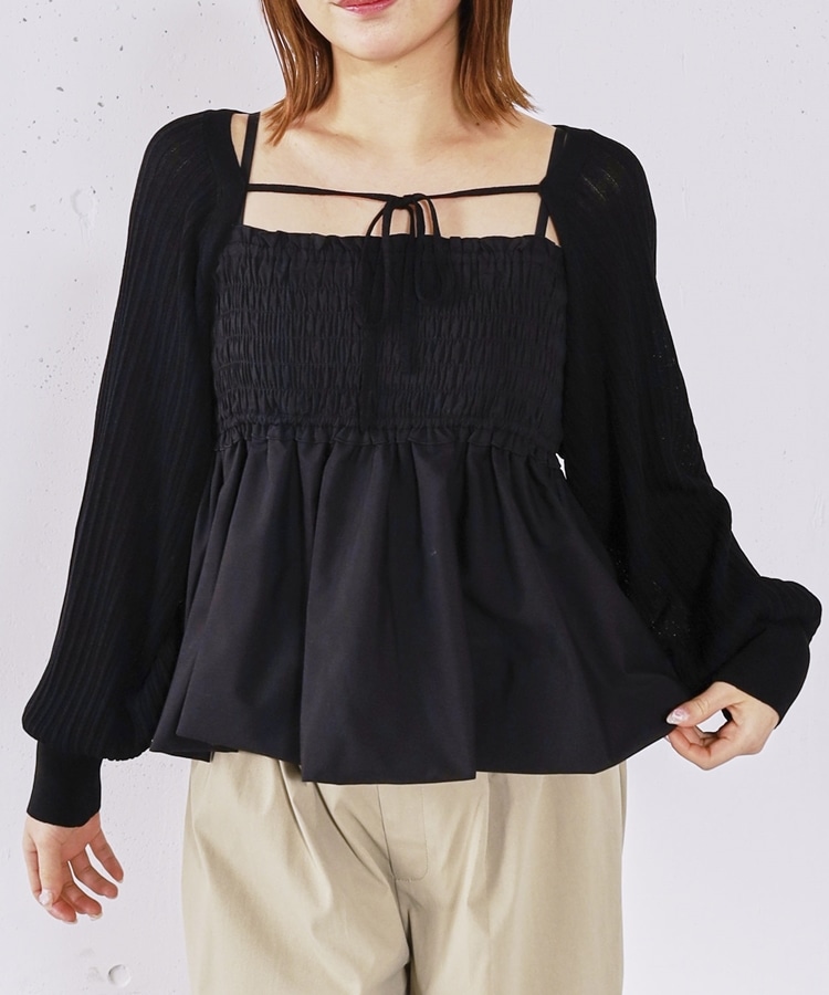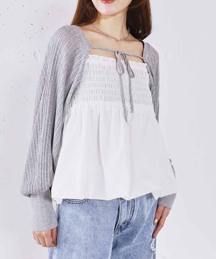 ■ふんわりきれいめバルーンビスチェ×ニットボレロSET■【デザイン】・胸元にシャーリングを施し、胸下切り替えからふんわり広がるバルーンビスチェ・立体感のあるシルエットで、女性らしく華やかな印象に・ボレロ丈のニットはコンパクトなバランスで着痩せ効果も◎・フロントで紐を結ぶデザインで、さりげないリボンが可愛いポイント・手首部分がきゅっと締まり、袖はぽわんとしたシルエットで柔らかい印象に・セットでも単体でも使える、着回し力の高いアイテム【素材感】・ボレロは程よく薄手のニット素材で、ロングシーズン活躍・柔らかく肌なじみの良い質感で、快適な着心地・ビスチェはシルエットがきれいに出る、程よいハリ感のある素材ーーーーーーーーーーーーーーー透け感:なし裏地:なし伸縮性:あり光沢感:なし生地厚さ:普通洗濯方法:可(手洗い推奨)※詳しいお手入れ方法は商品についているタグをご覧くださいーーーーーーーーーーーーーーー※ご利用のモニター環境により、実際の色味と多少異なる場合がございます。【スタイリング】・デニムやカーゴパンツと合わせて、甘さを抑えたカジュアルコーデに・スラックスと合わせて、バランスの取れたきれいめスタイルに・それぞれ単体使いで、ワンピースやTシャツにプラスするのもおすすめ▼スタッフ別の詳しい着こなしは下の COORDINATE をチェック