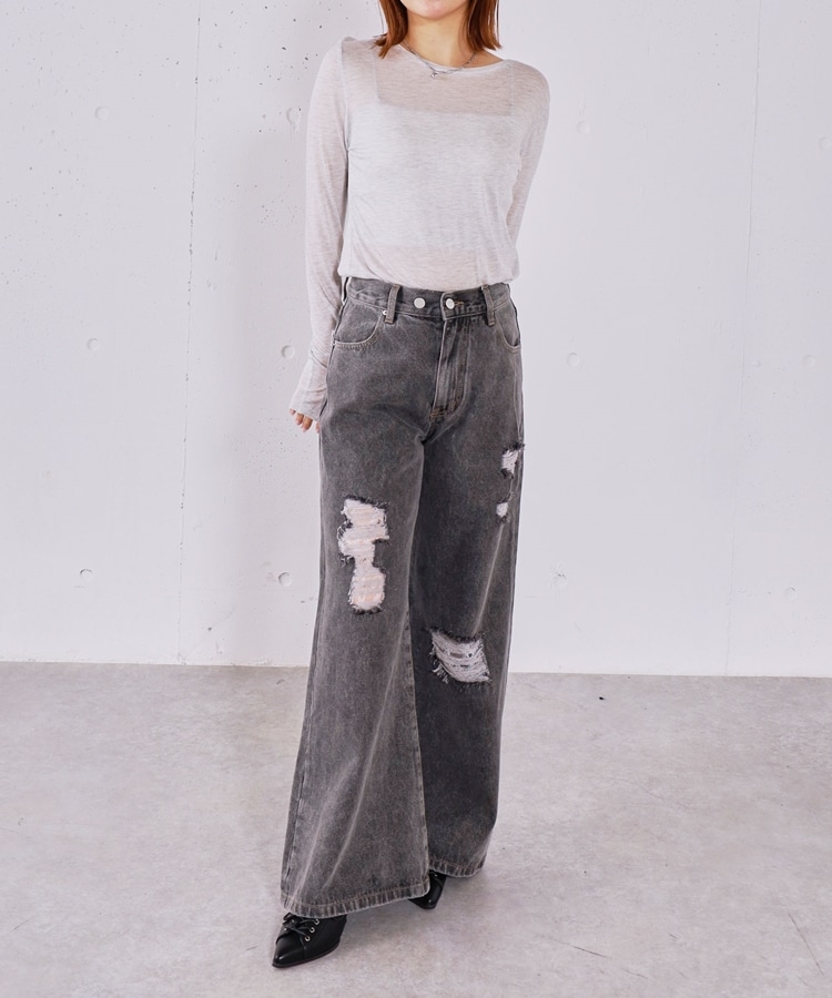 シアー天竺クルーネックトップス GRAY