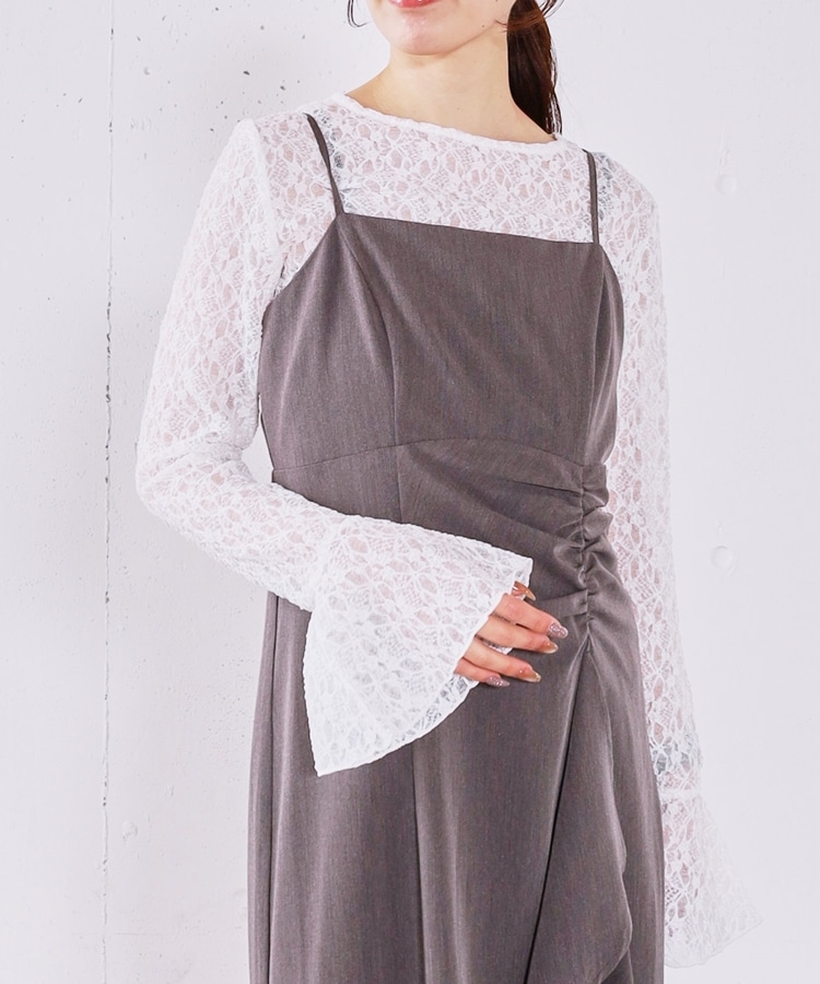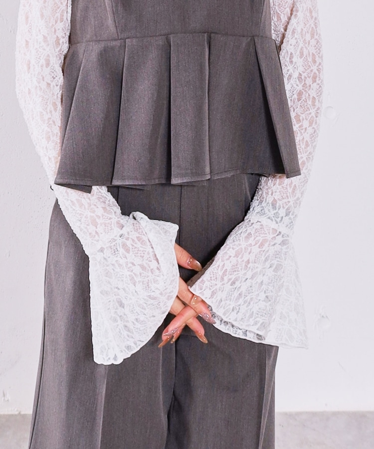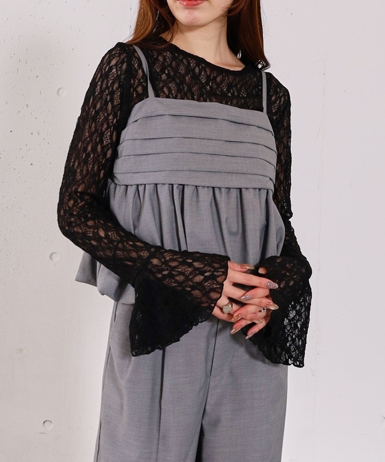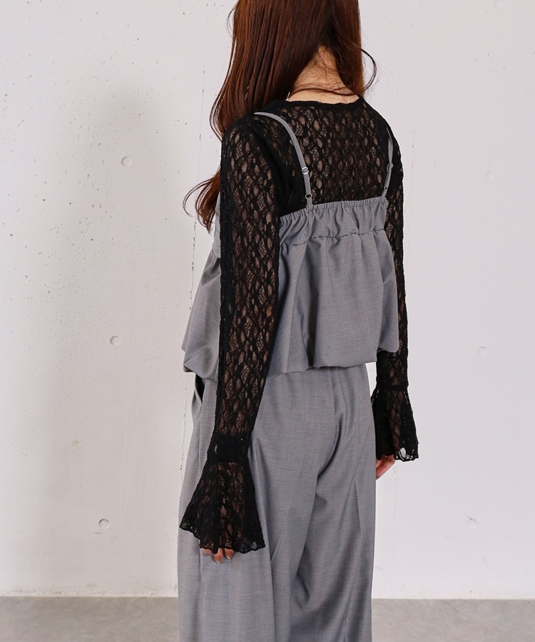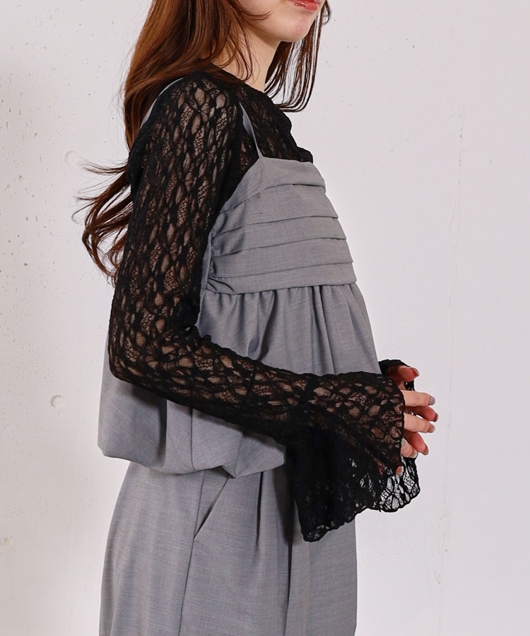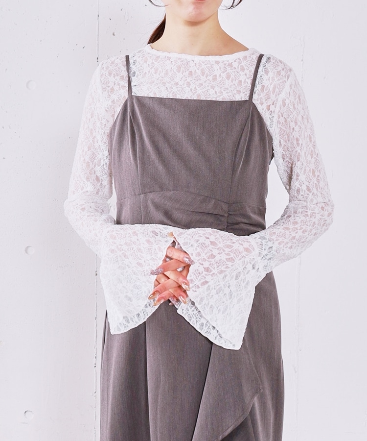 ■マルチに使えるお役立ちレーストップス■【デザイン】・レイヤードでぐっと華やぐレーストップス・オトナっぽく着こなせる細かめのレース・袖口はフレアで一枚で着ても可愛いデザイン性をプラス【素材感】・伸縮性のある着やすいレース素材・身頃は体にフィットするので他のアイテムと重ねてもごわつきませんーーーーーーーーーーーーーーー透け感:あり裏地:なし伸縮性:あり光沢感:なし生地厚さ:薄め洗濯方法:洗濯可※詳しいお手入れ方法は商品についているタグをご覧くださいーーーーーーーーーーーーーーー※ご利用のモニター環境により、実際の色味と多少異なる場合がございます。【スタイリング】・キャミワンピースやキャミチュニックに重ねるのが◎・オンスタイルでも華やかに着こなせます・ニットやスウェットに重ねて袖口や襟からレースを覗かせるのも◎▼スタッフ別の詳しい着こなしは下のCOORDINATEをチェック