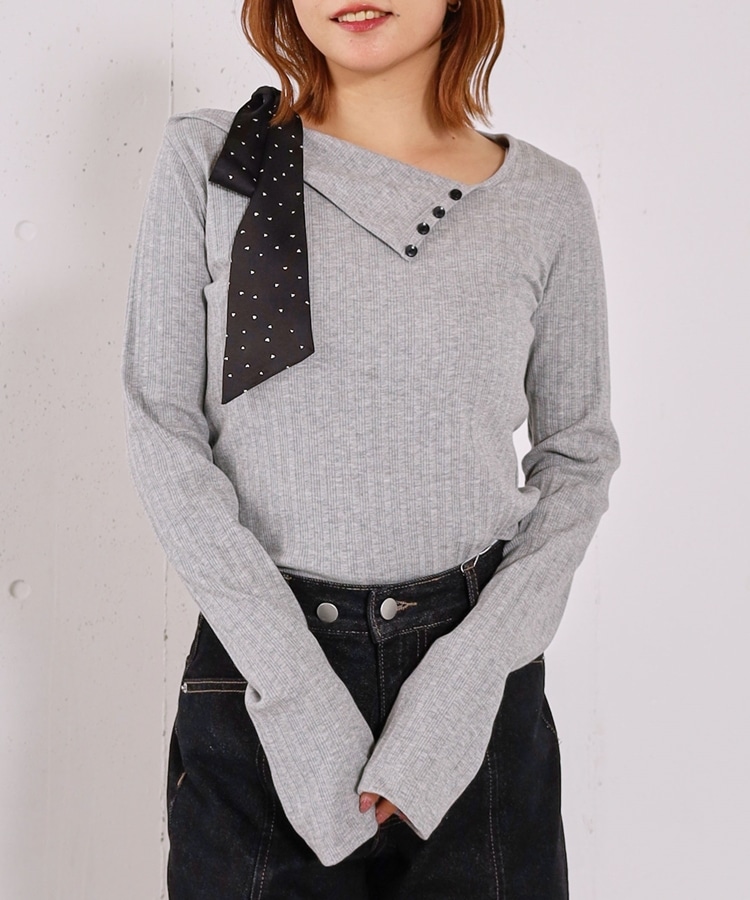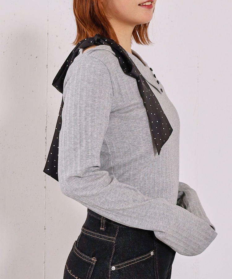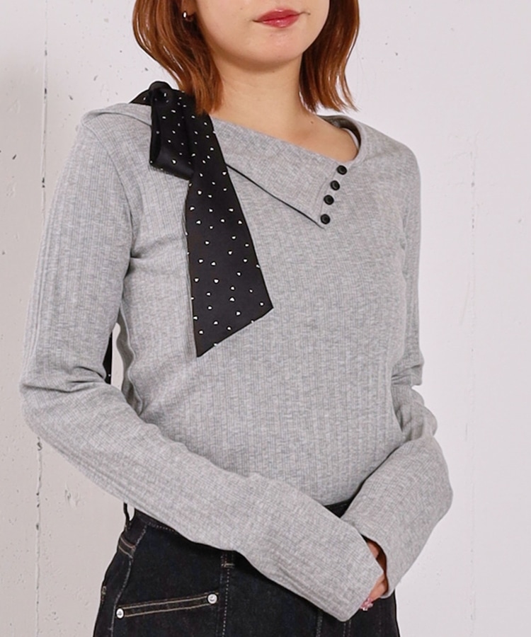 肩リボンワンショルカットTOPS GRAY