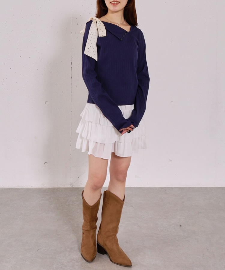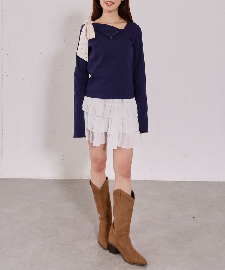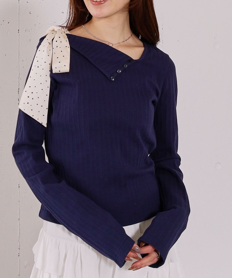 肩リボンワンショルカットTOPS NAVY