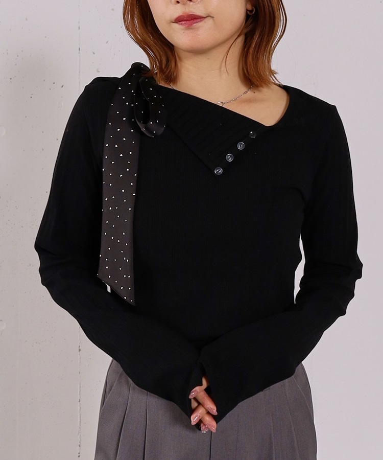 肩リボンワンショルカットTOPS BLACK