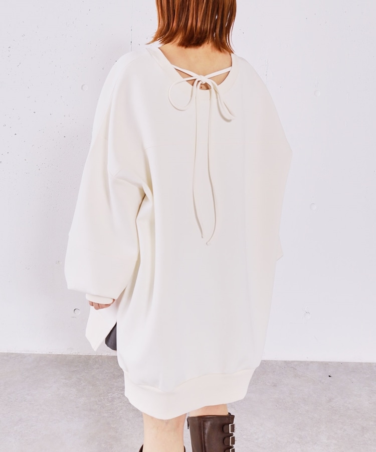 ・首元はシンプル、バックスタイルにリボンをあしらい女性らしさをプラス