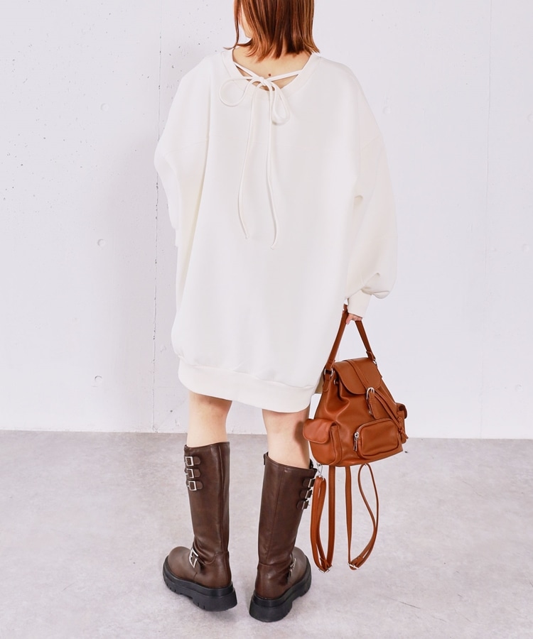 ・バックリボンをアクセントに、シンプルコーデでもしっかり着映え◎