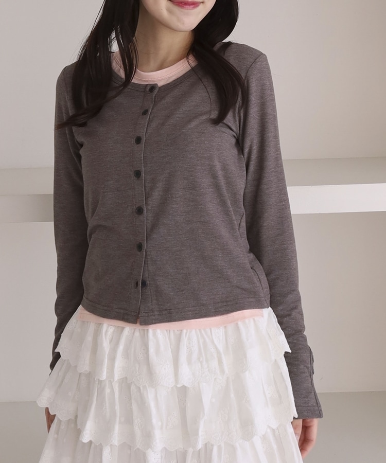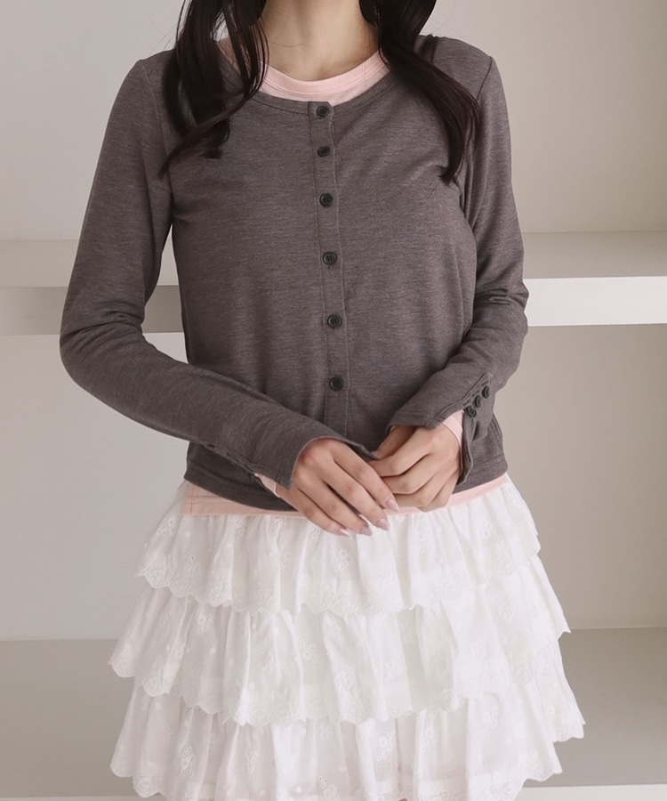 シアーカットカーデ/ロングスリーブTOPS GRAY