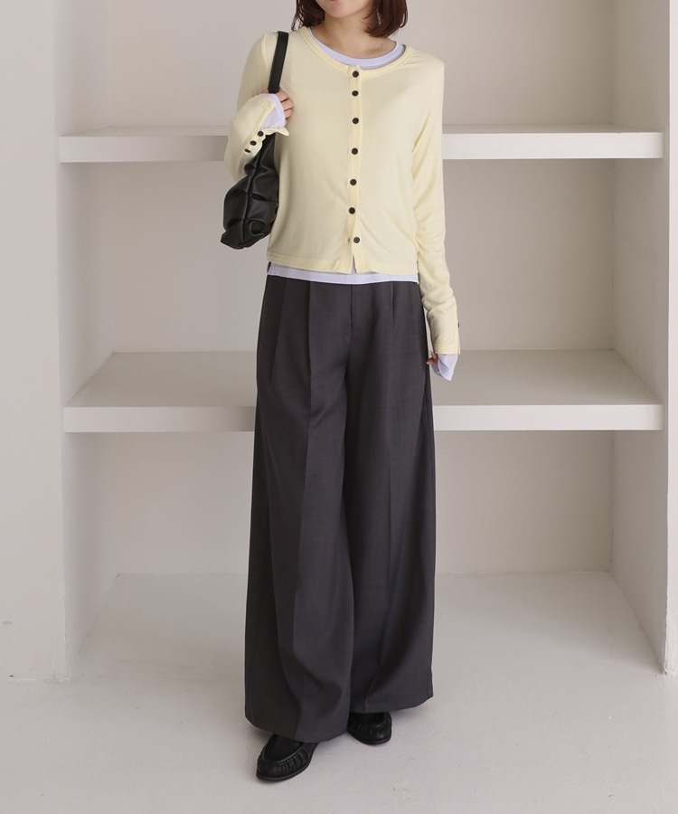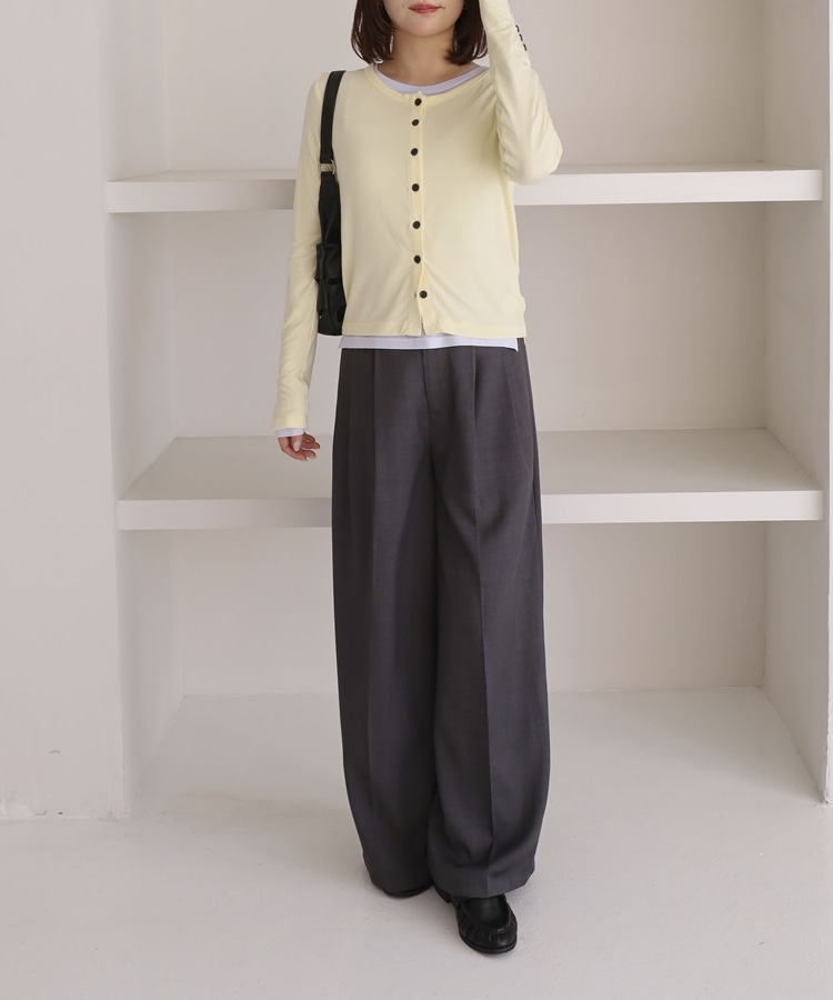 ・カーディガンはベーシックなデザインながら、ボタンがさりげないアクセントに